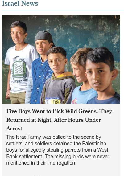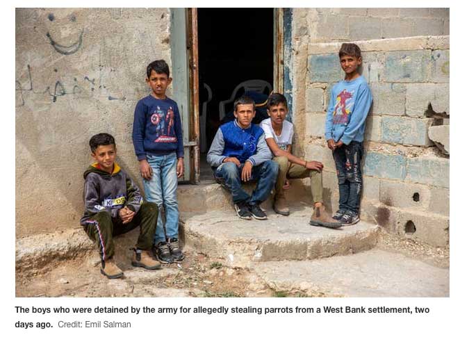 Die Jungen, die vor zwei Tagen von der Armee festgenommen wurden, weil sie angeblich Papageien aus einer Siedlung im Westjordanland gestohlen hatten. Emil Salman