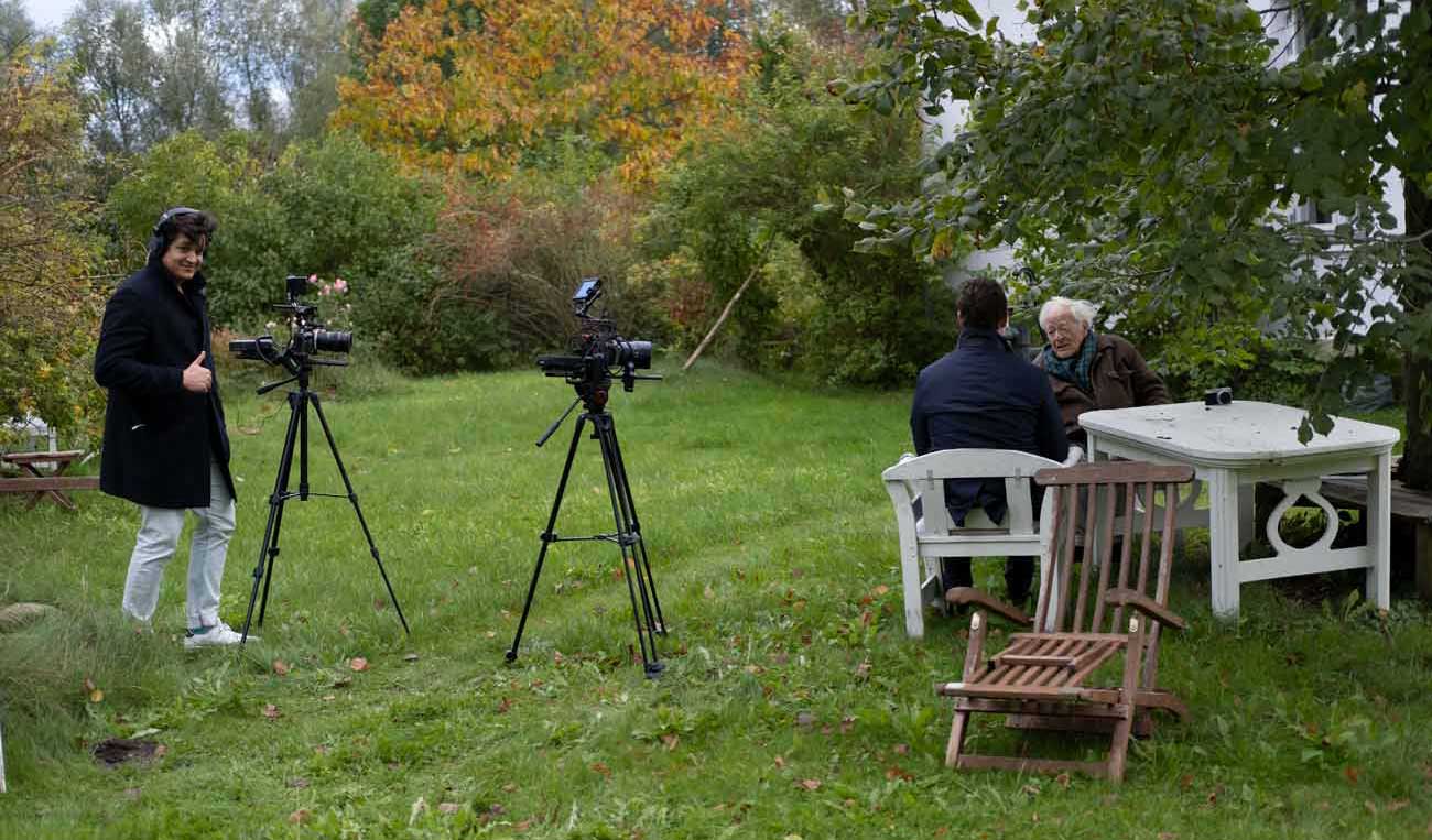 an den verschiedenen Stationen des Rundgangs und der Aufnahmen für den Film des Lebenswegs