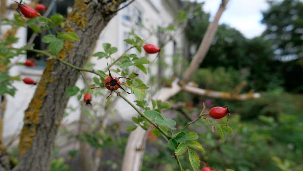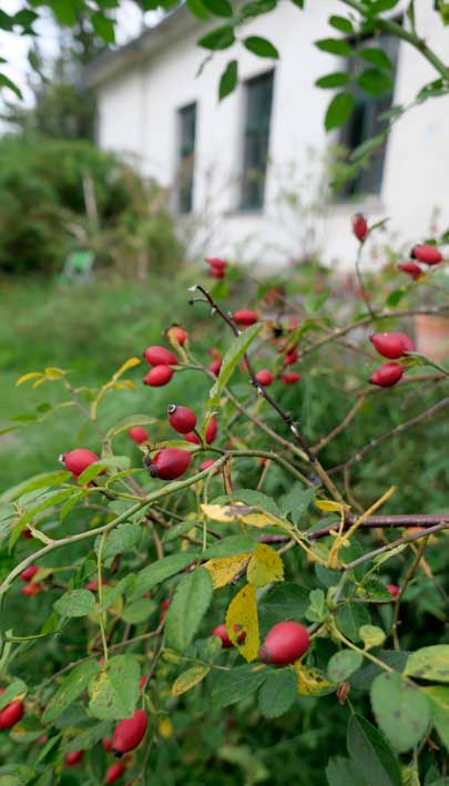was eben noch Rosen vor den Fenstern, jetzt die roten Beeren für die Vögel im Winter