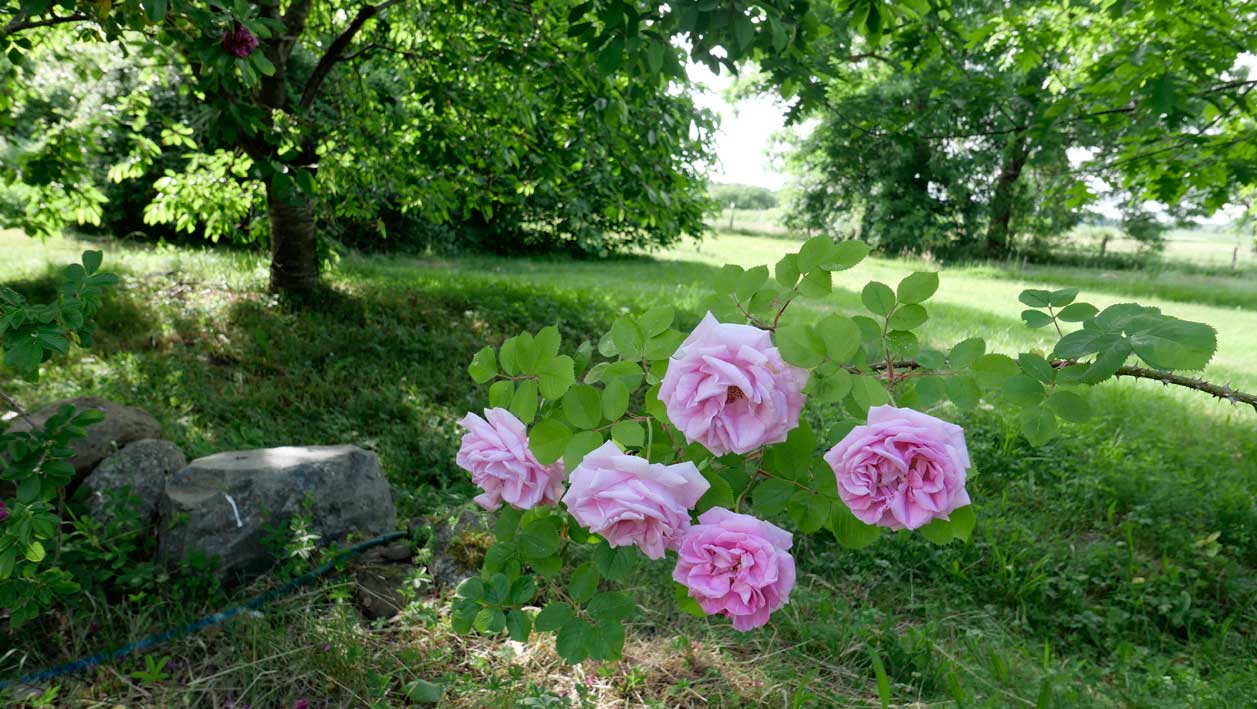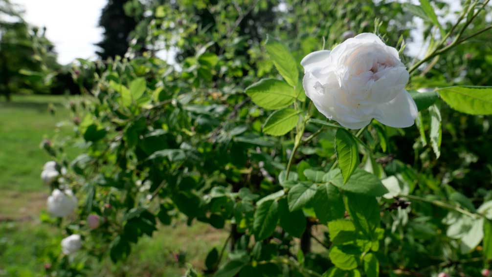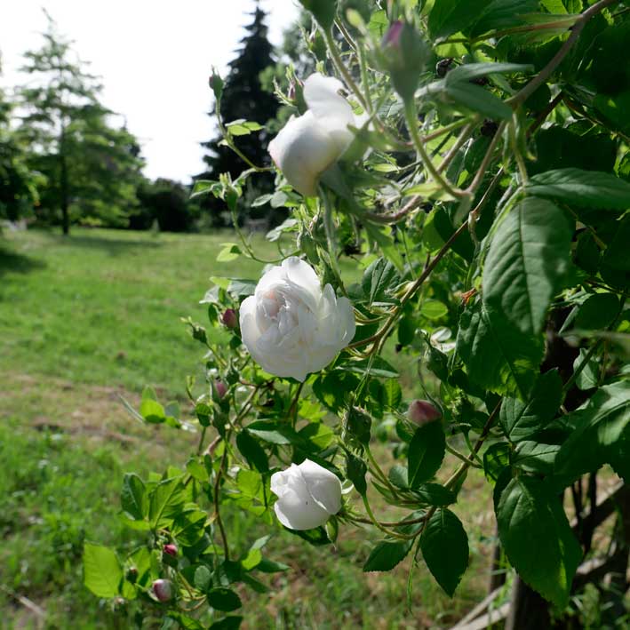 in Blumen weich bekränzt von Haus zu Haus