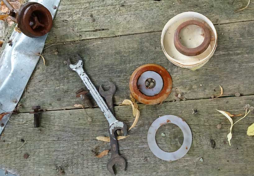 Dichtungen, Ventile unter die Erde gehen. alte Schrauben. Tiefe.