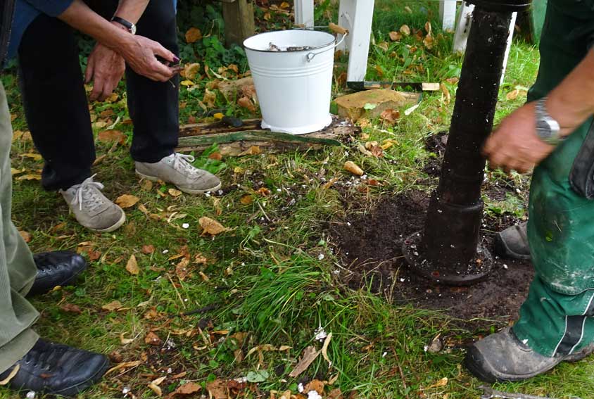 Vor dem Graben in den Brunnenschacht erstemal das Saugrohr prüfen. lang und schwer- Am besten mit Kran von oben ziehen. Oder schräg halten und versuchen zu ziehen, selbst, mit nachfassen, wer fässt nach