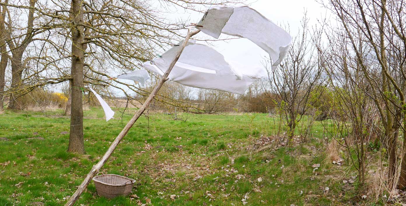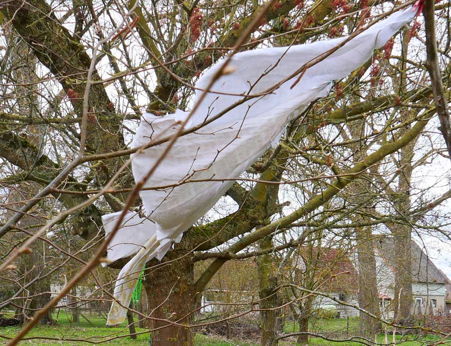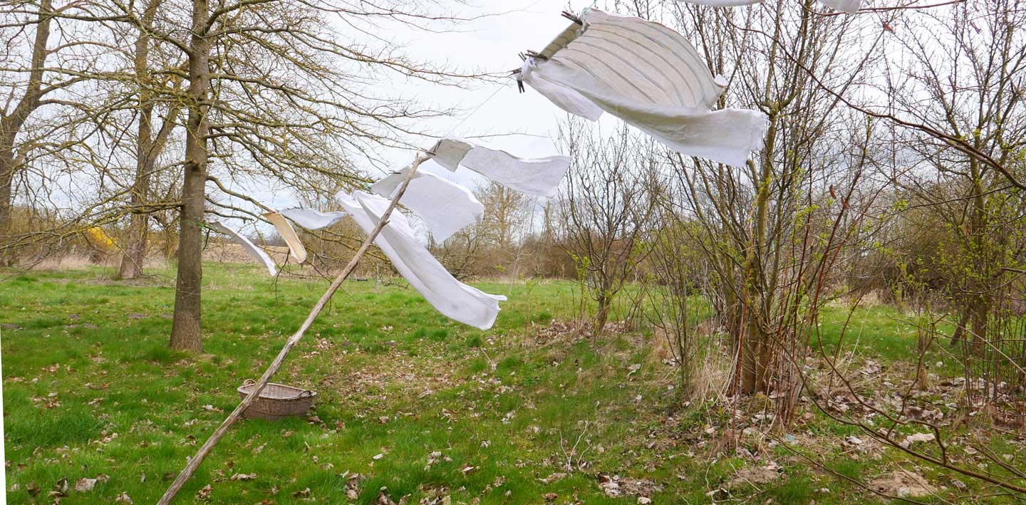 erste Wasche wieder frei in Sonne und Wind und zwischen, unter Bäumen