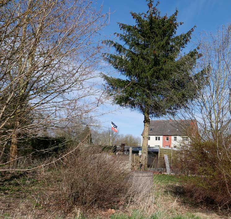 Kiefern und Konferen wo die Strassen sich gabeln von unten hochgeschoren auch da wo kein Auro fährt, entartet