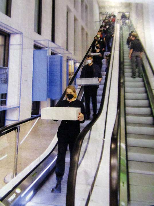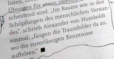 Und wir fühlen uns, diese Bilder verglichen mit dem alten Bestand der Fassaden, und der inneren Räume aus den alten Büchern, und ihrer Funktionen, hier ohne Sinn, auch des angerufenen Humboldt, so nicht zuhaus.