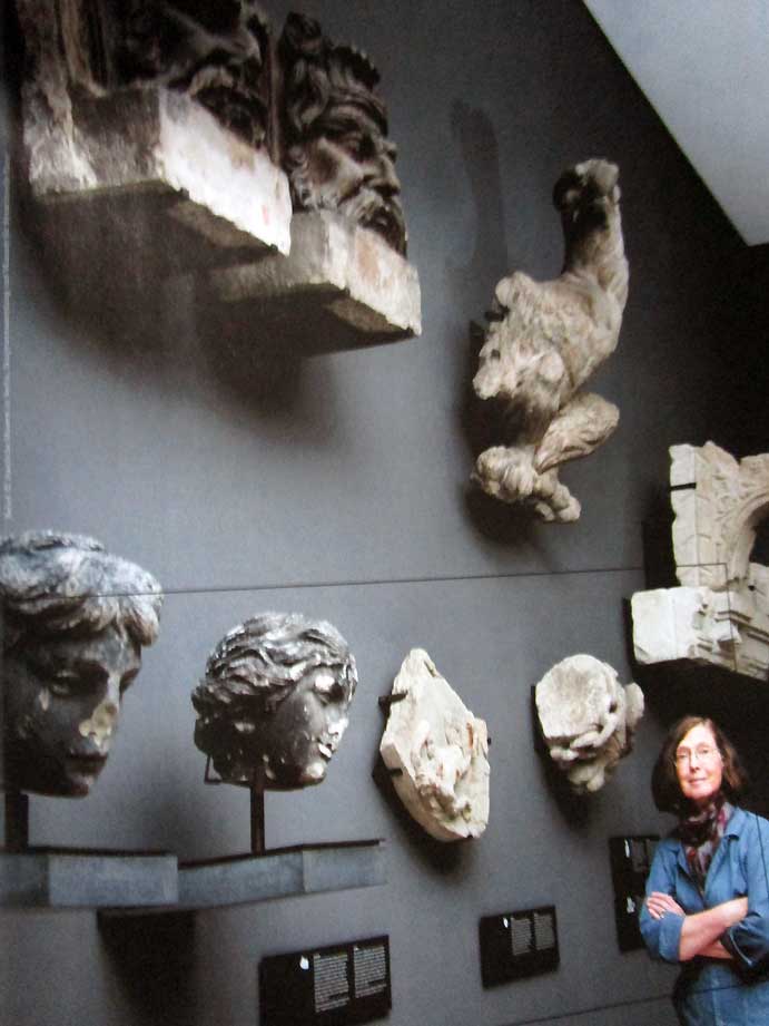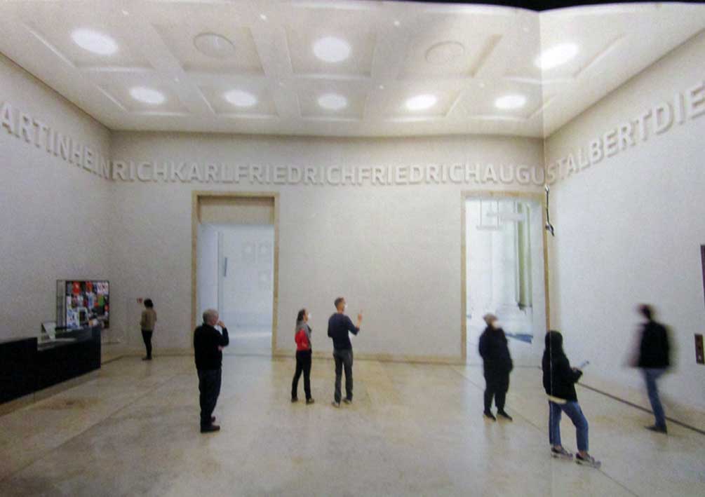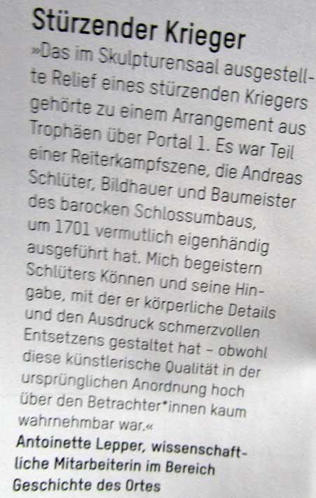 Oben, im Gehäuse nun selbst sieht man ein paar der erhaltenen Köpfedesalte Schlosses hier, die den Brand nach den Bomben vor 45 und den mutwilligen Abriss danach