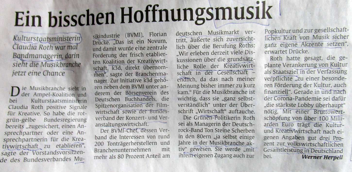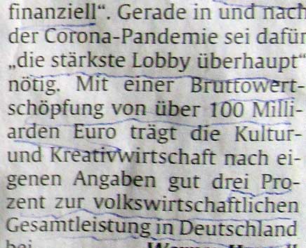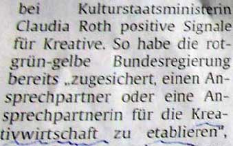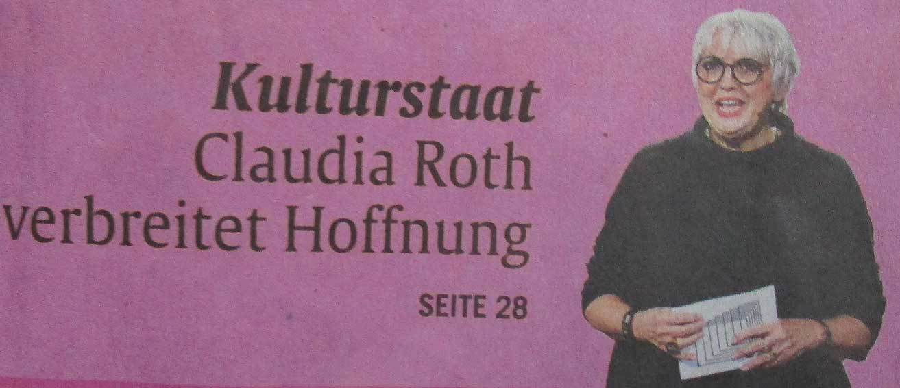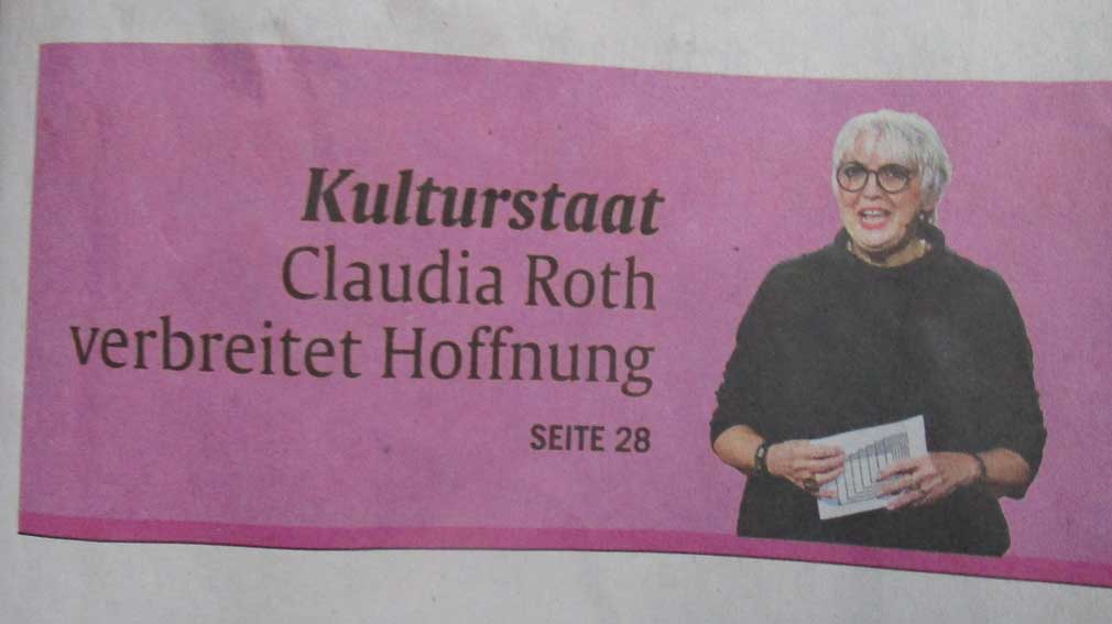 Die Worte der neuen Verantwortlichen als Staatsmin. der Kultur in Berlin stossen auf Bilder solcher Eröffnungspräsentation wie die Faust aufs Auge, aus ganz anderer Welt .