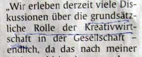 Die vielfach zitierte Kreativ-Wirtschaft als Mass will nicht überzeugen, des was bringts, wenn wir soviel dafür zahlen. Wem und von wem. Auch verglichen mit dern Erwartungen in den Bildern der Entstehungszeiten -mit viel Nachdenklichkeiten und noch alles drin- aus den Räumen hier noch mit Menschen von überall her und nun vertaner Leere.