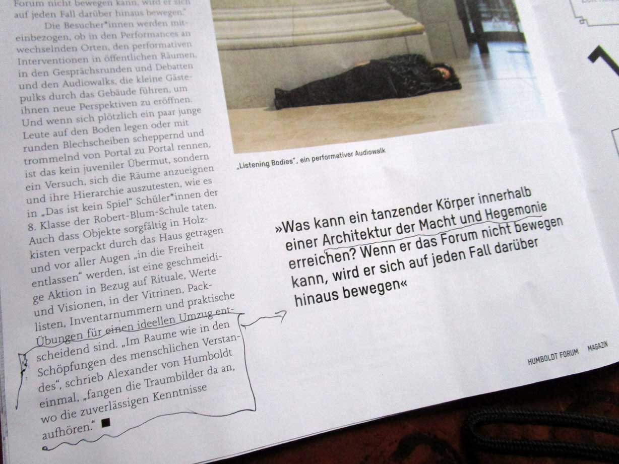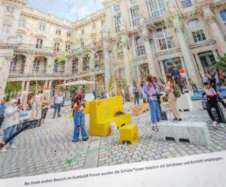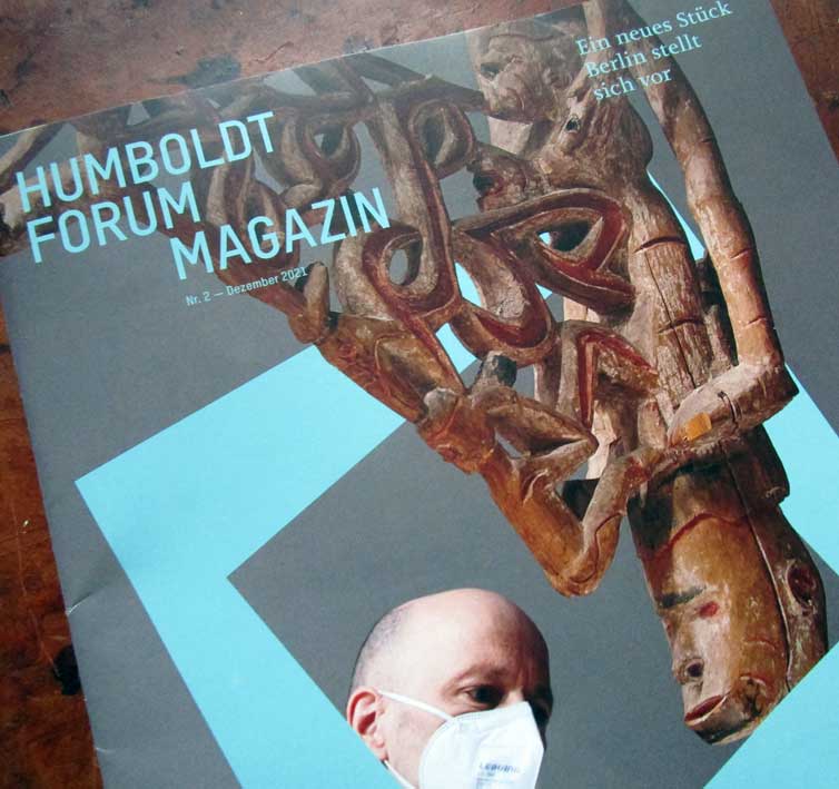 Das Magazin des wieder eröffneten Gebäudes in historischer Maske des Barock, das sich nun Humboldtforum nennt, am Beispiel aussereuropäischer Kunst. Deren Exitenz nun umstritten ist, weil sie dem kololnialen Epochen der europäischen Expansion entstammen und heute von ihren Ursprungsländern zurück gefordert werden. Nicht zuletzt wegen dieser demonstrativ zentralen Behauptung in europäischer Mitte nun.