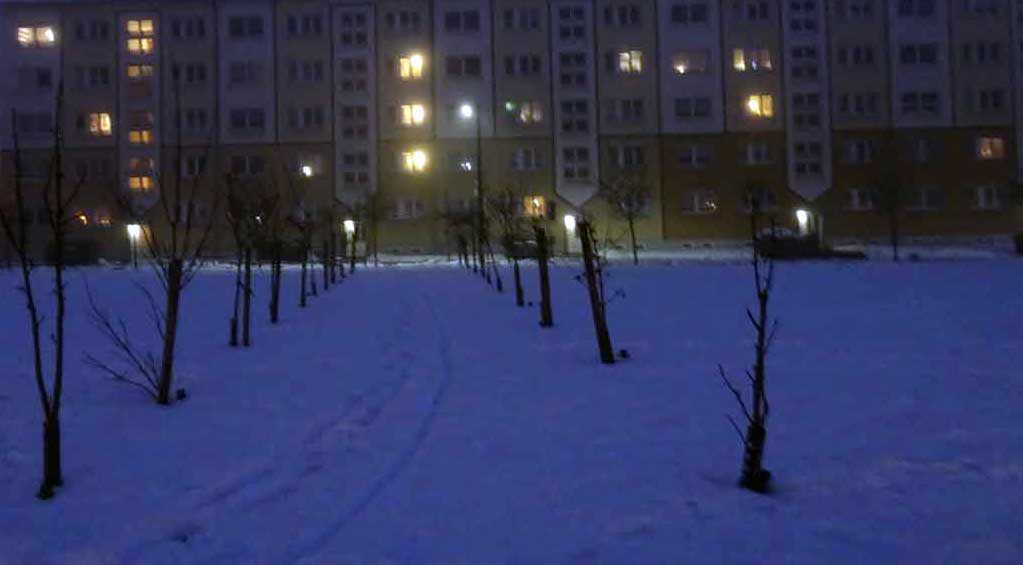 und wenn die Fenster aufsHaus zu schauen vereist sind, sehen diese aus dem Haus zur Kirche mit dem Turm wieder zu wissen wohin es geht, auch wenn sie uns den Weg dahin versperrt haben, wo sind sie nun.