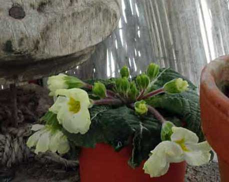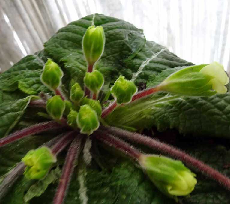 und wo die Primeln überwintern im Glashaus mit dem Schutz gegen den Wind nun ins Haus gebracht zum Feuer werden es danken bald, als erste.