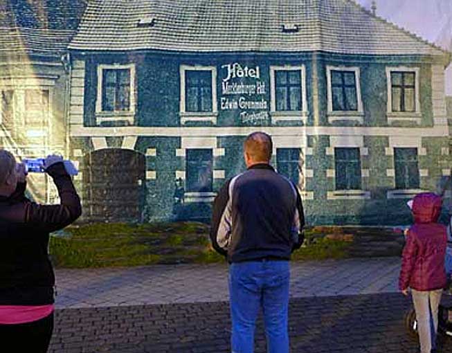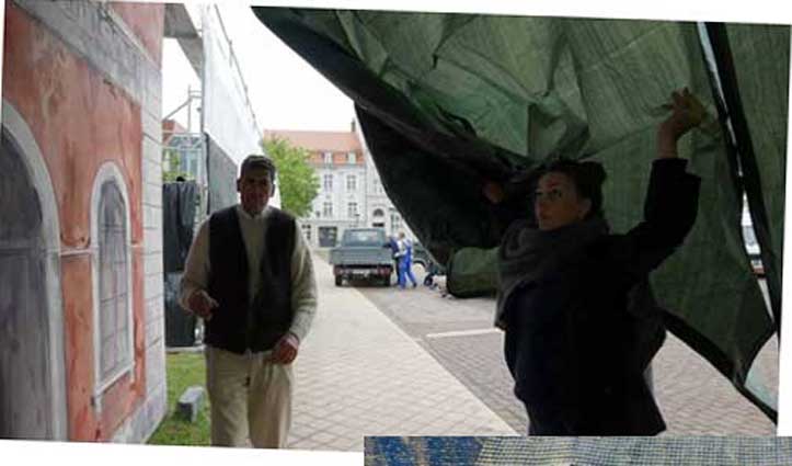 Es war eben nicht nur einen Nachahmung der Schloss.Installation als optisches konkretes VorBild zur Wiederherstellung des Alten mit Gerüsten und Prospekten, sondern ein erzählender Kosmos, den alle annahmen, mit Namen und Figuren zu lesen und sehen und zu erzählen auch wieder und wieder zu lernen, auch uns. Nun mit dem Auftrag anders als in Berlin den Inhalt dazu so erfinden, dass alles es wollen. Und sonst nichts.