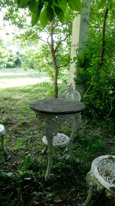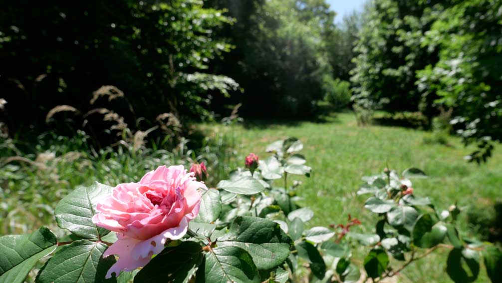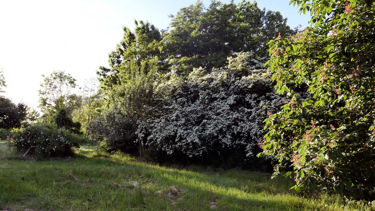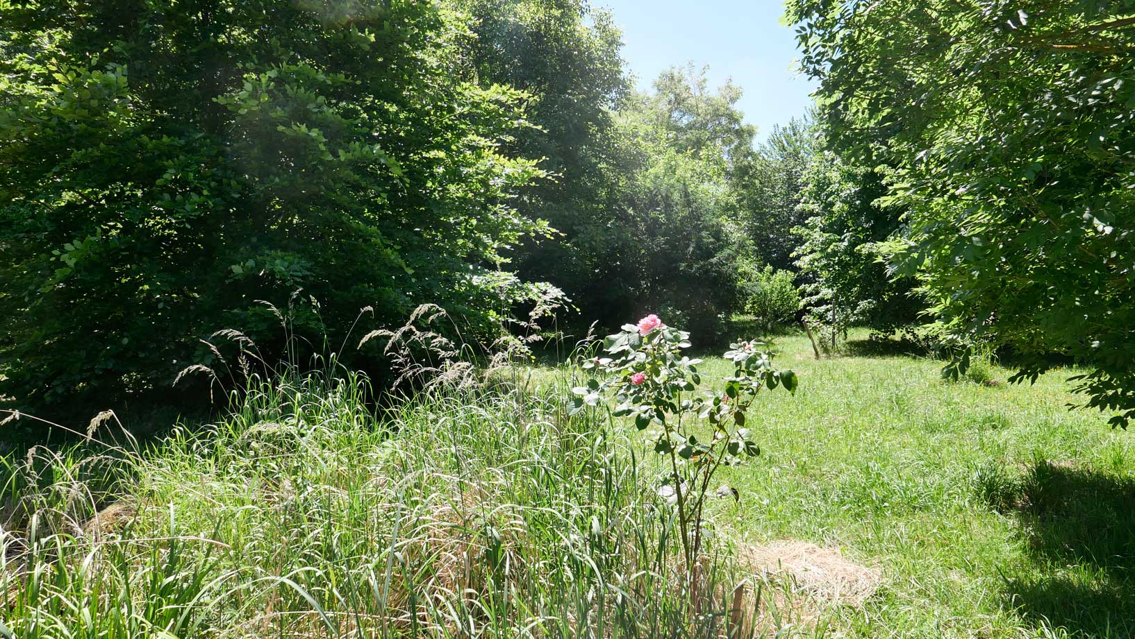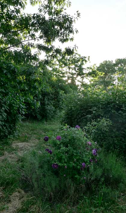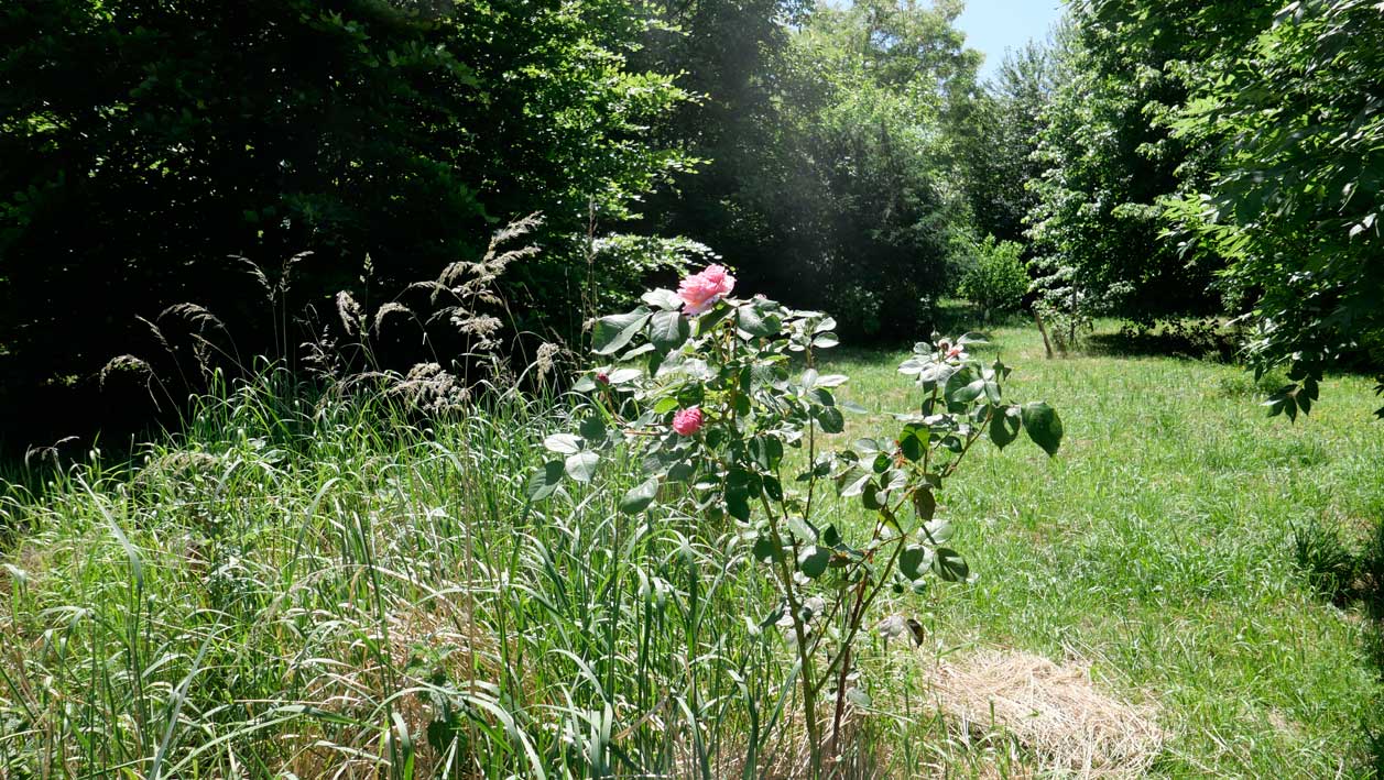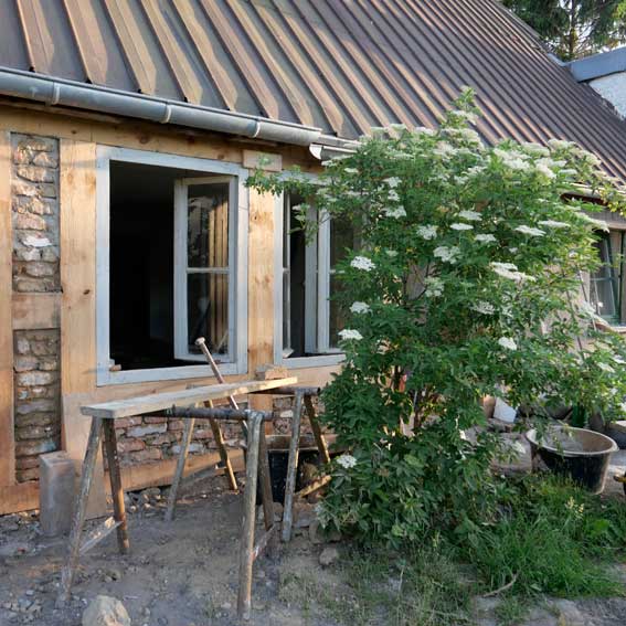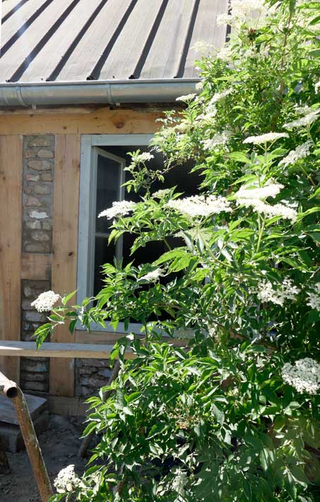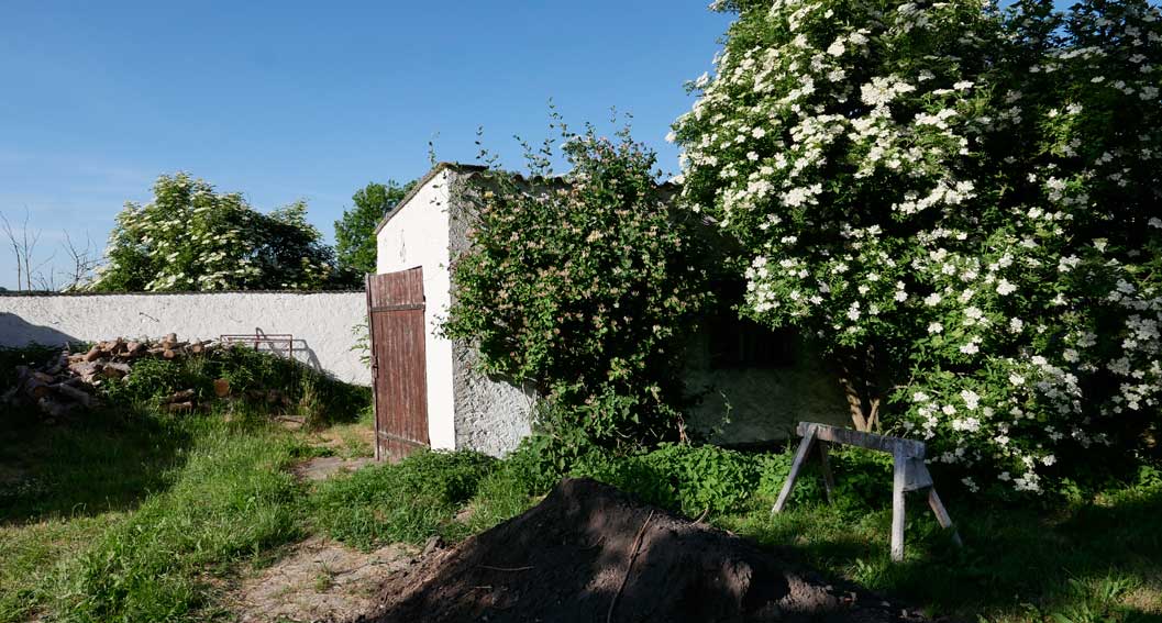 Auf dem Hof an den Wänden der Holunder und das Geisblatt noch nie so üppig. Zwischen alten Holz zum Heizen und Erde zum Pflanzen.