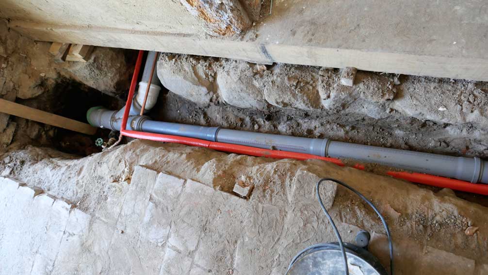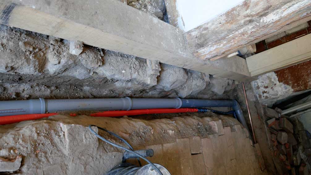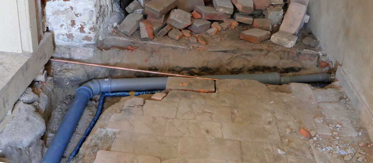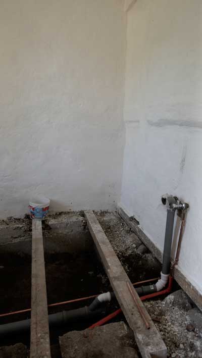 Das Badezimmer mit den Wasseranlagen unter der Erde, nur hier. Unter dem noch ältesten Teil des Hauses.