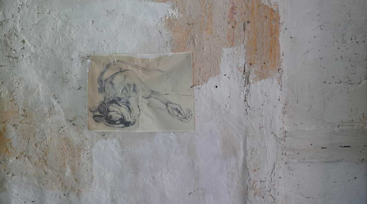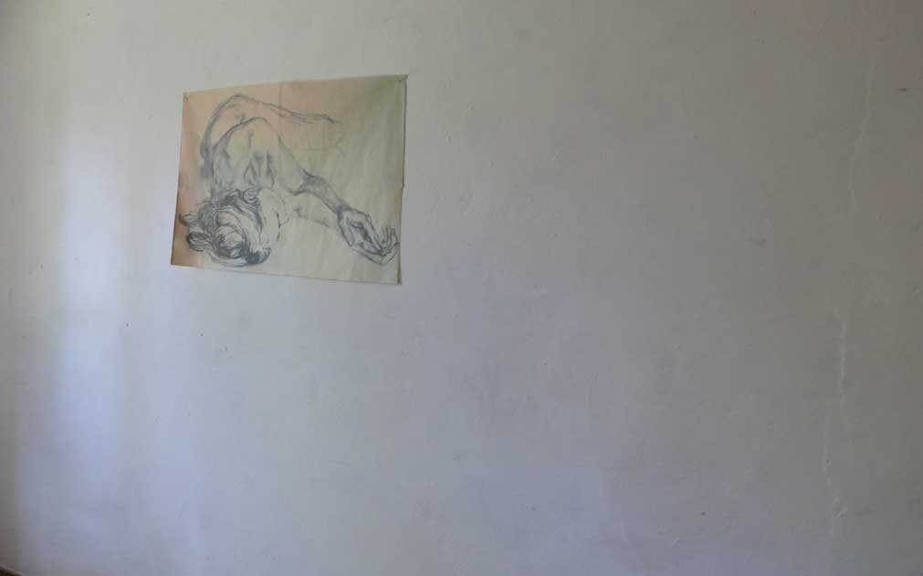 Daneben die Wand, die noch zu machen war auf altem Lehmgrund mit alten Spuren von Fachwerk und farbigen Fassungen. So lassen. Wo immer möglich.