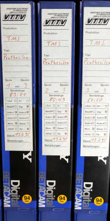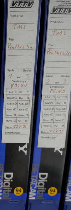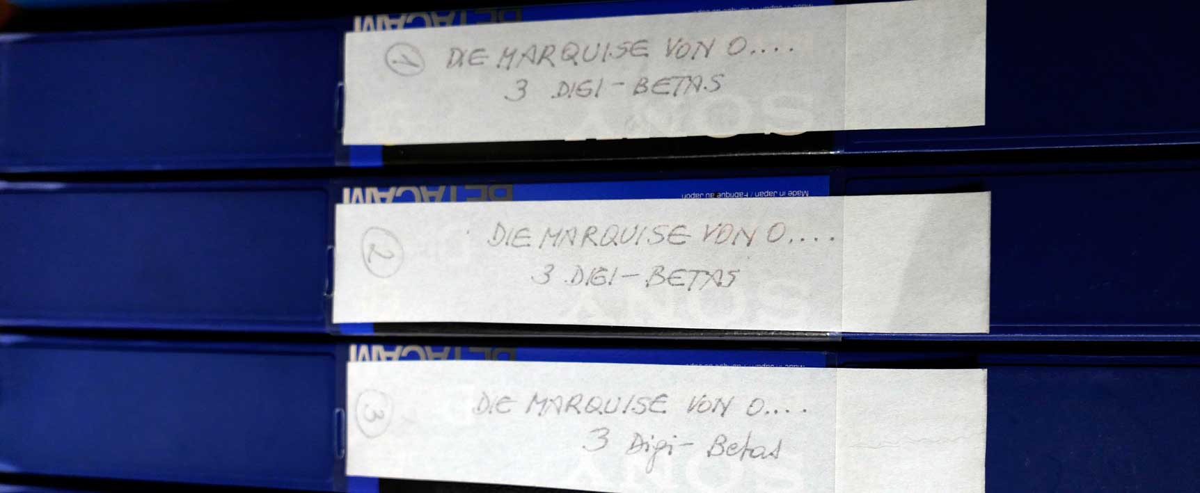 nach DIE NACHT wurden auf elektronischen Matertial verschiedener Formate gemacht. Alle -anders als die Negative im Bundesarchiv- Kasetten dazu liegen hier im Haus. Jetzt bereit zu sortieren nach Dringlichkeiten ihres Zerfalls und Wichtigkeiten, sie zu digitalisieren. So wie DIE NACHT schon dabei.
