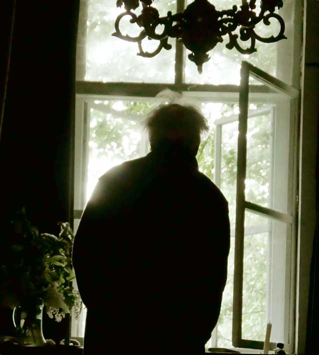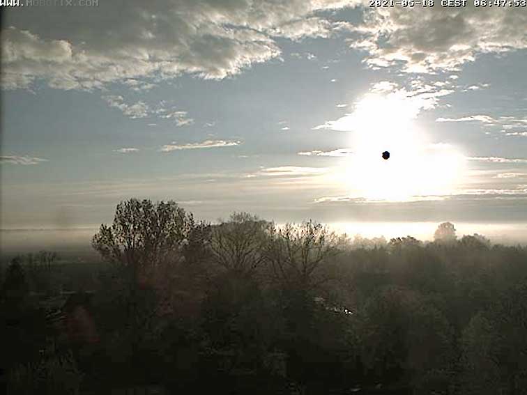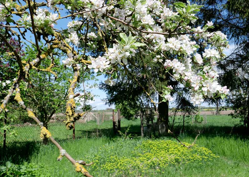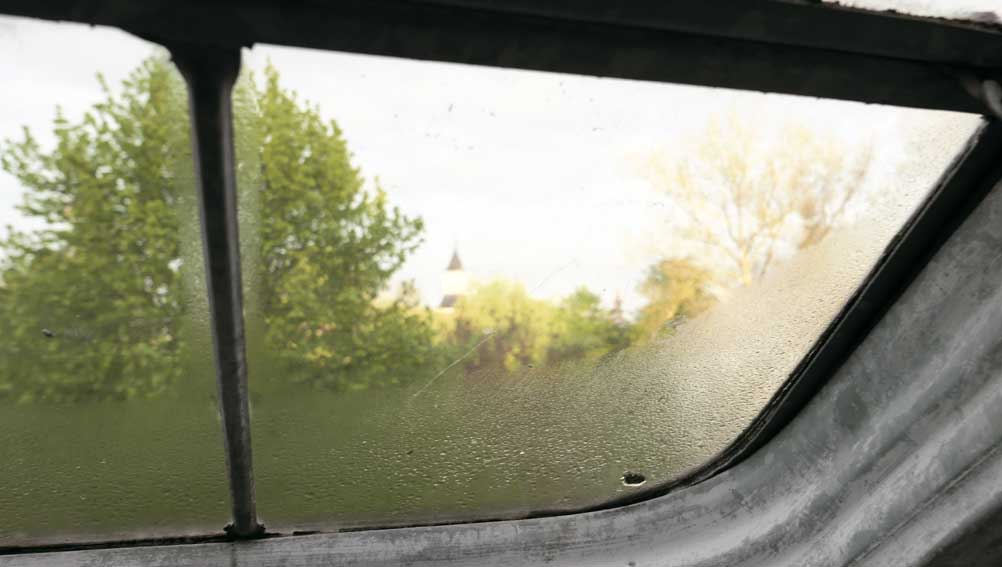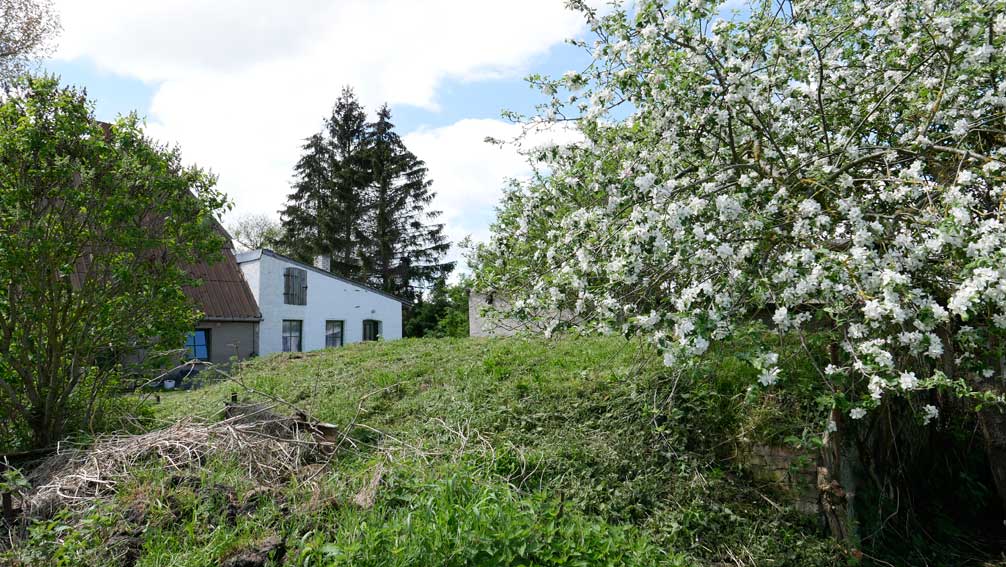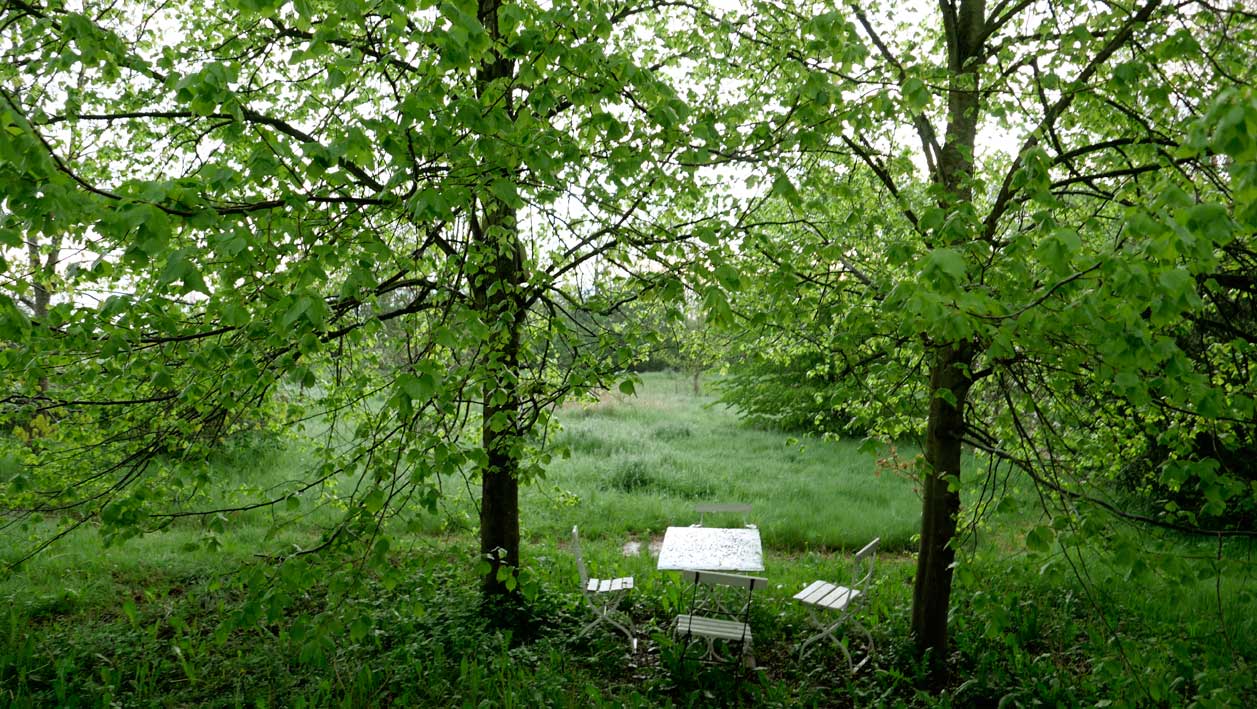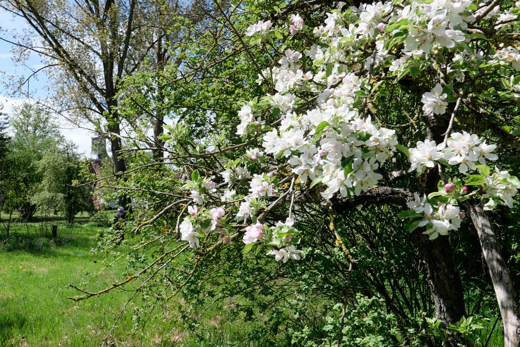 Fenster offen, der Kuckuck ruft, die Rehe am Rande der Felder über die Brücke des Grabens dahinten hinter dem Zaun.