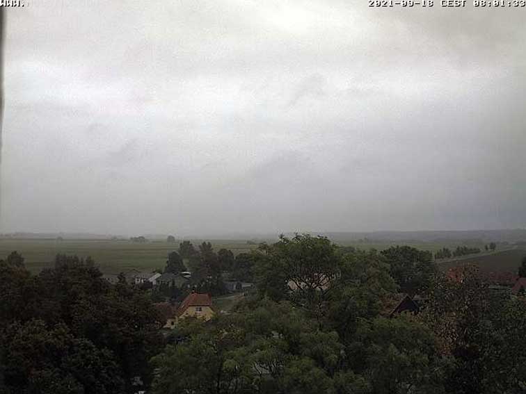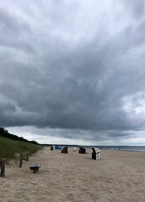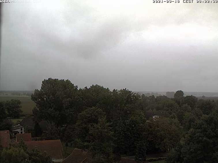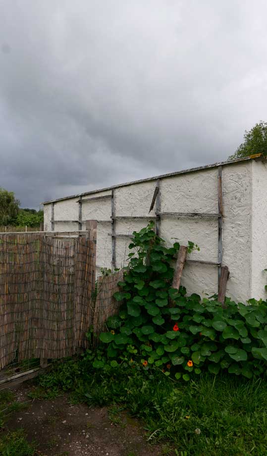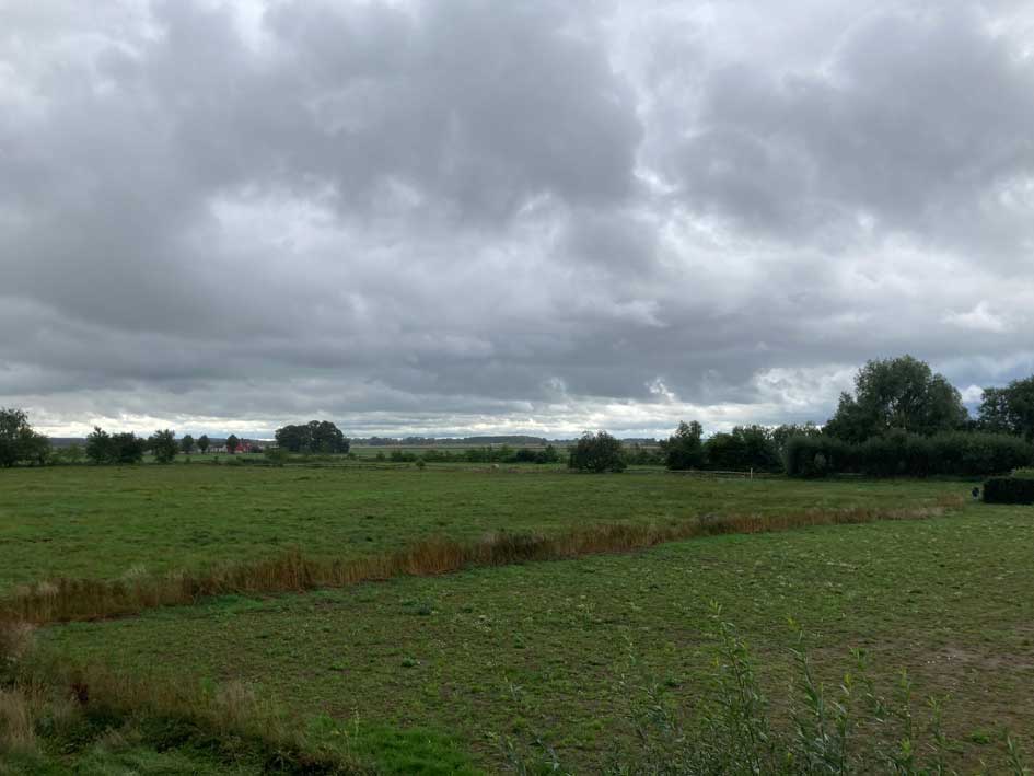Blick von unserer Terrasse nahe Hafen Karlshagen auf den Deich der Peene