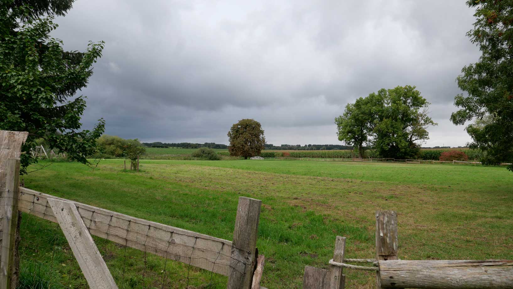 N. Über die Koppeln mit Graben-Brücke und Feldern zum Wald
