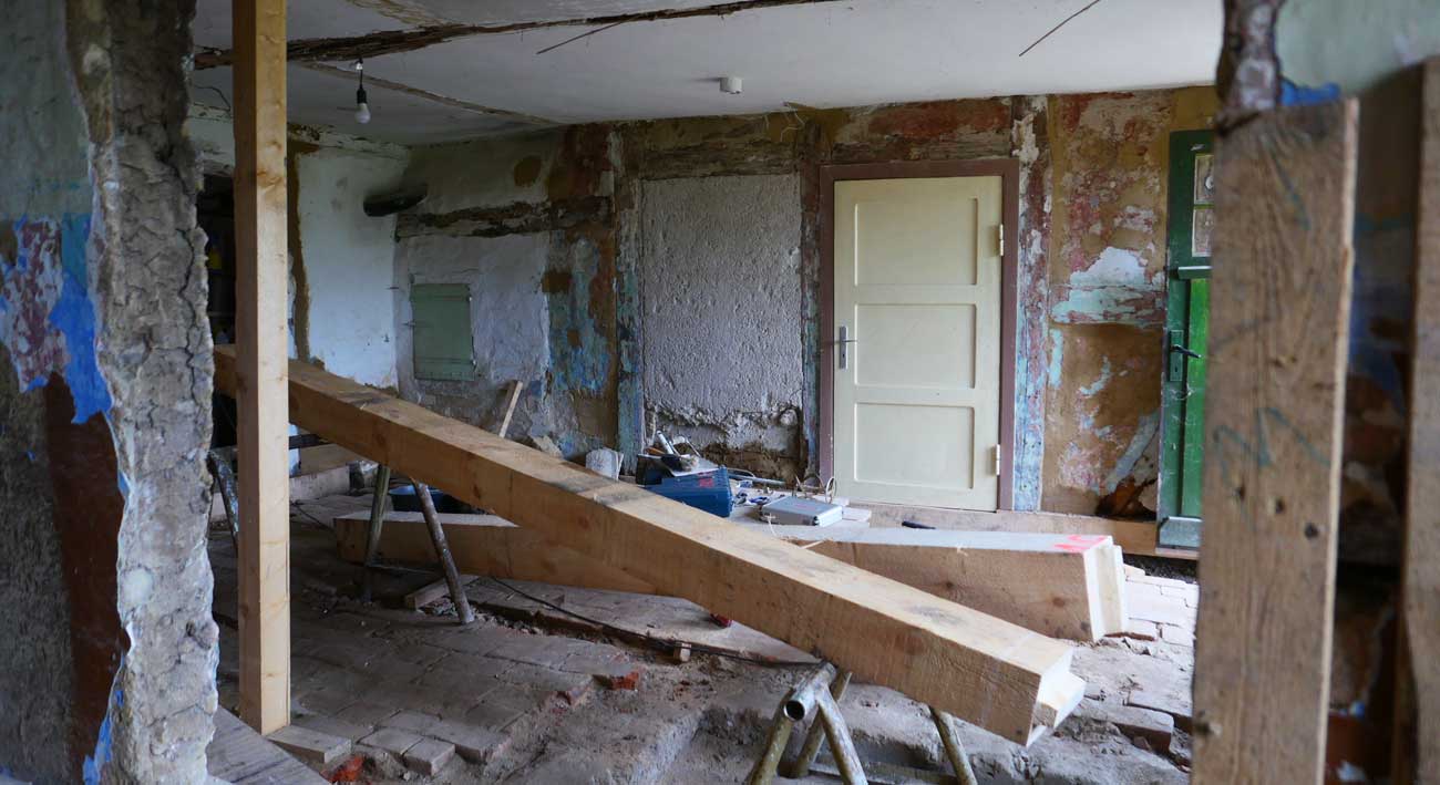 noch heisst es wände stüttzen Füssböden neu vergen Decken halten neuen Feste alte Türen einbauen