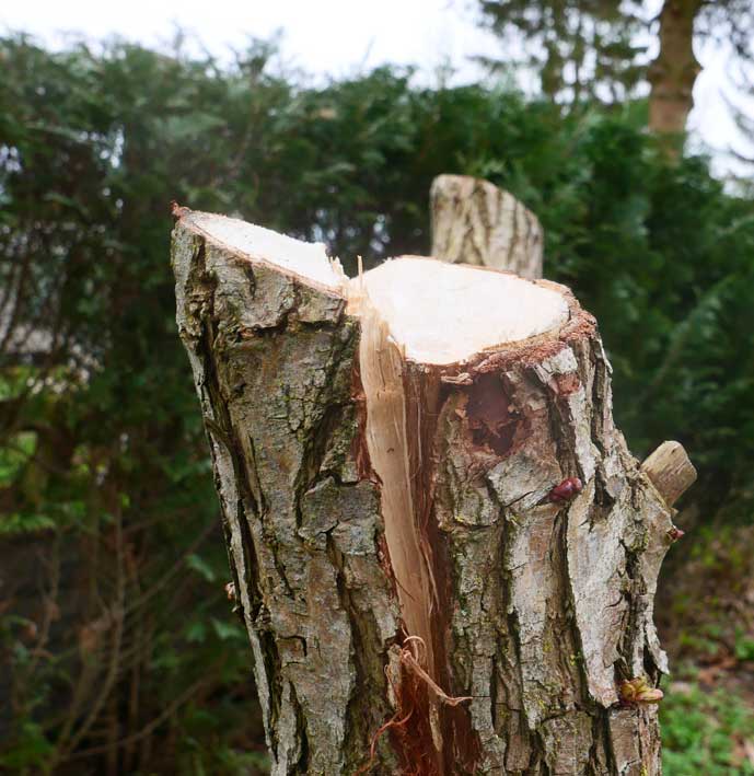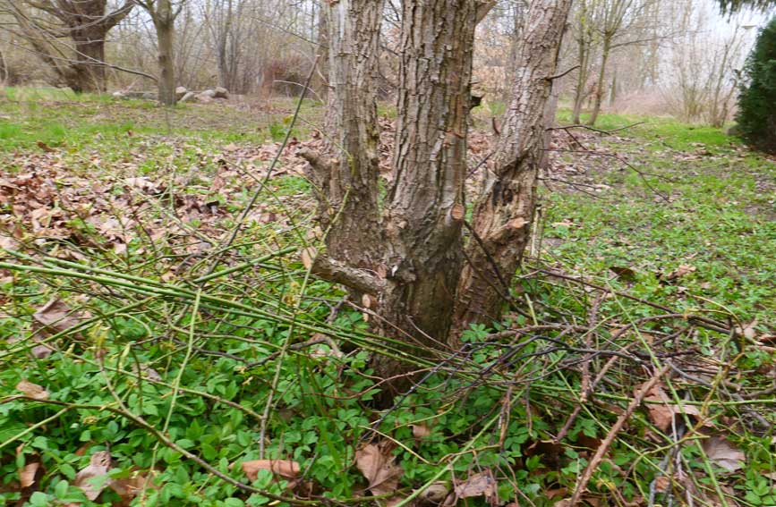 und die neuen Triebe vielleicht vor neuen Angriffen von der anderen Seite zu schützen.