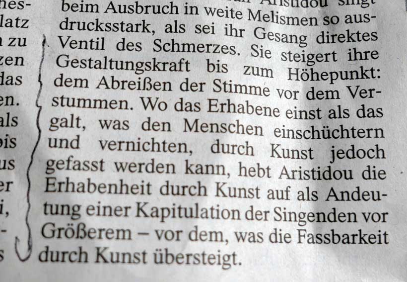 Im reichen Salzburg der Festspiele immerhin gibt es das auch "unkonventionelle Gattungsbeiträge" als "Beschreibung einer Beklemmung" und "was die Fassbarkeit durch Kunst übersteigt" als Forderung. (I.Br. in der FAZ)