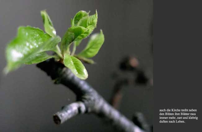 auch die Kirche (!) treibt neben den Blüten ihre Blätter raus immer mehr, zart und klebrig duften nach Leben - wenn es mal so wäre.