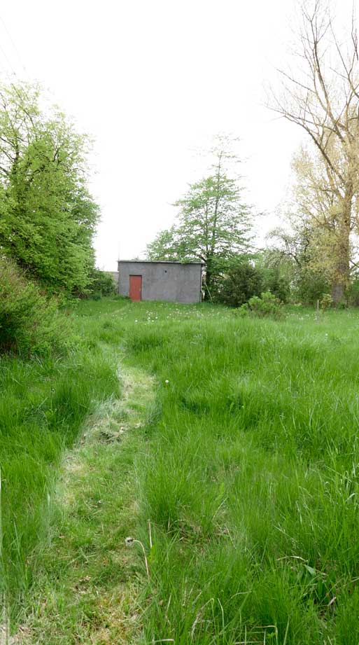 dem klassischen Blick über den gemäss, nun ein Weg der alten Steine mit der Scheunen früher links dem Kuhstall gegenüber, amputiert auch er, aber noch erkennbar als Halle.