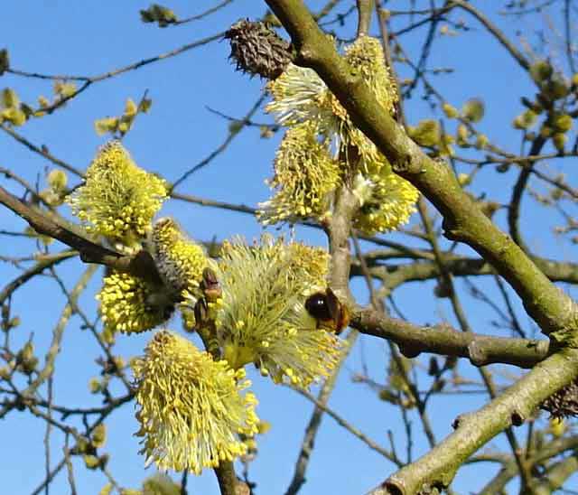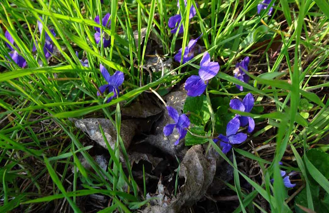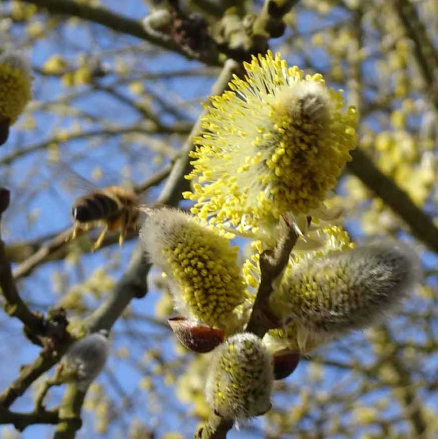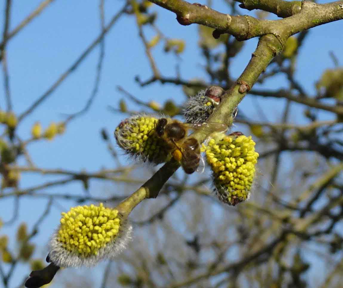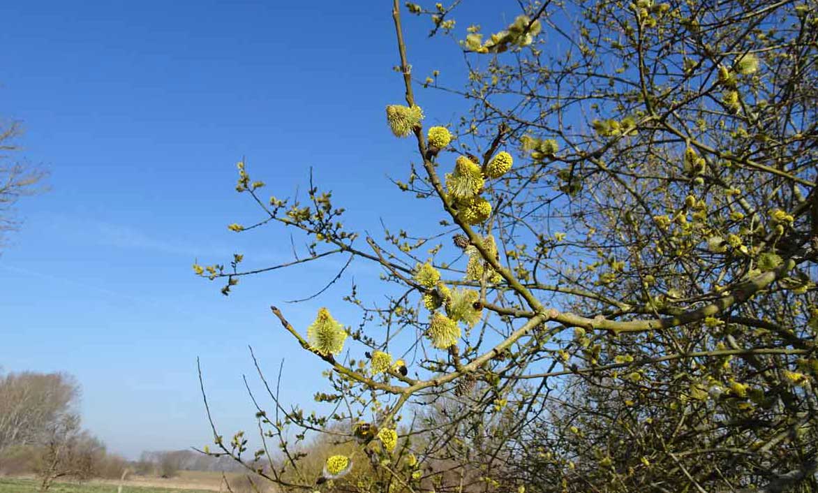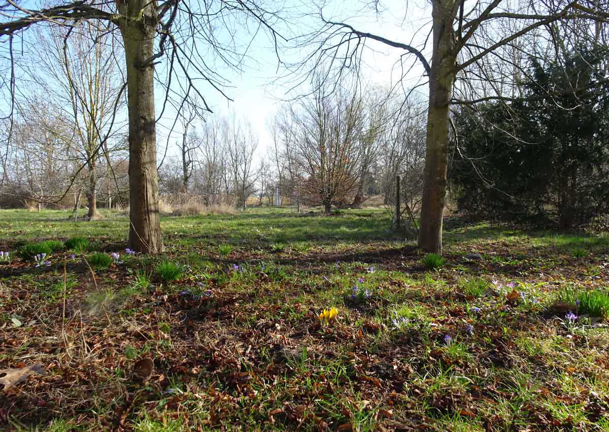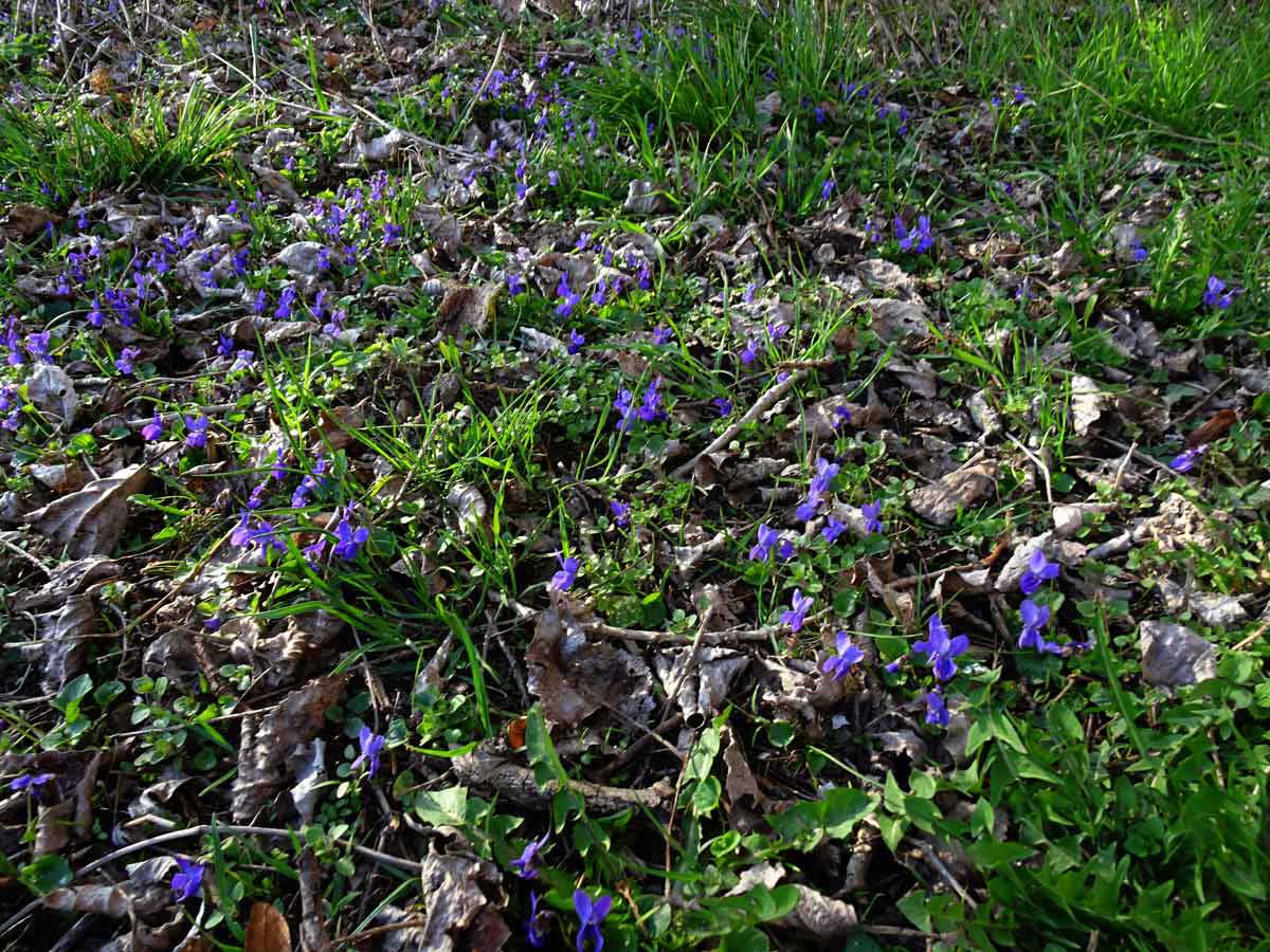 Des Biene-Tags voll nun auch vor den Knospen und Blättern die Farben die Erdblumen zwischen Laub und Ferne - so soll es sein-