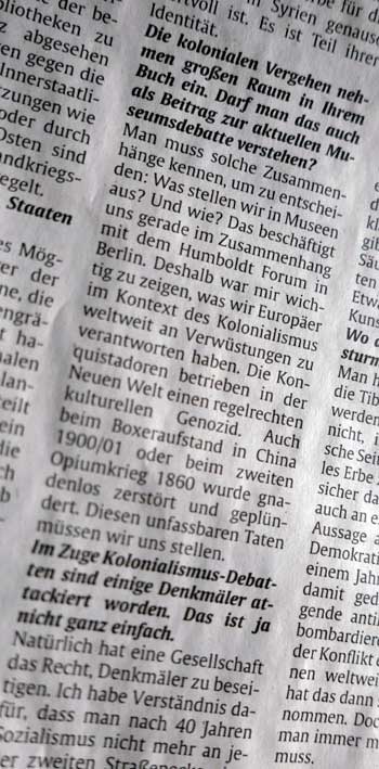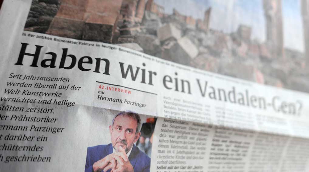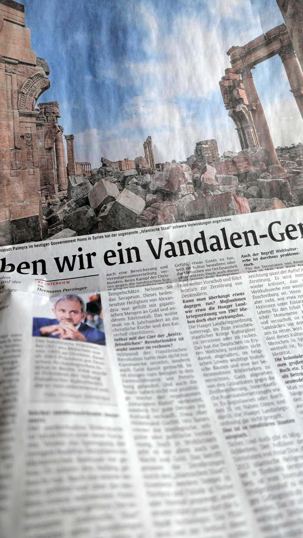 So spricht er über die grossen Kunstvernichtungen und Raubzüge der Sieger, da kennt er sich aus, als Macht- und Geldraub. In der franz- Rev. und nun bei den IS-Leuten. Ob er auch auch von den Verlusten in Russland 1917 spricht? und schon gar nicht was 1945 im Osten geschah als Preussen zur Kulturstiftung wurde, die er nun verrät.