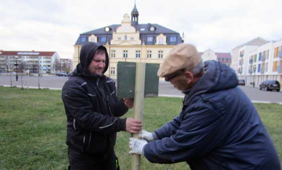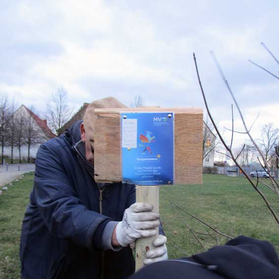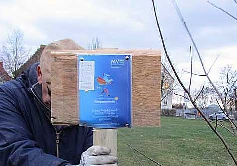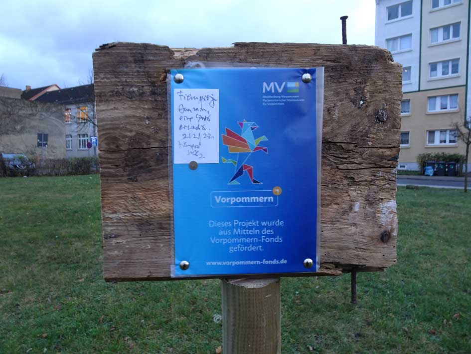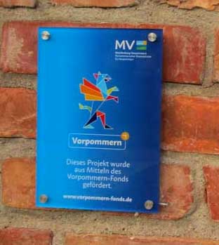 Aus Schwerin vom Land MV Die Schilder anbringen zur Markierung wo etwas mit Geld unterstützt wurde.