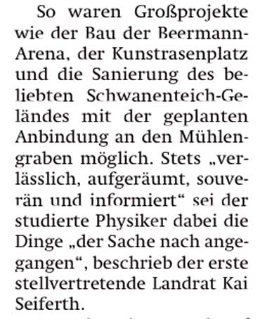 Die Aufgezählten "Erfolge" sind allesamt traurige, bestenfalls peinliche Bestandsicherungsmassnahmen ohne Vision. Das "Haus Demmin", obwohl mit Geld ausgestattet, noch immer ohne Ideen. Dass er die erste Installation zum Markt vor 6 Jahren freudig begrüste, leitete ein, was dann folgte. Nicht nur erhebliche Spenden-Gelder und öffentliche Mittel flossen damit nach Demmin, auch eine weitreichende Bürgerbewegung wurde eingeleitet.