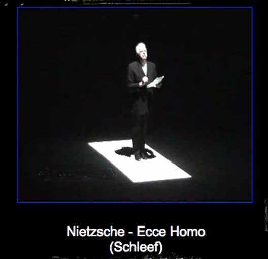 Und In Berlin eine Hommage zum 20sten Todestag vn Einar Schleef -darin der Nietzsche Text ECCE HOMO, als Film.
