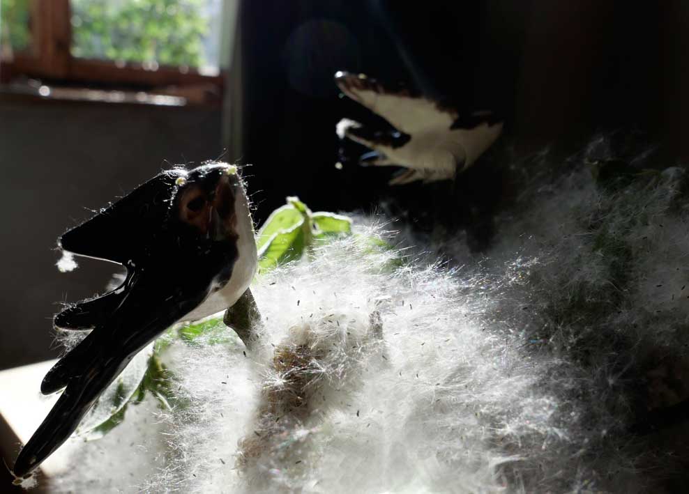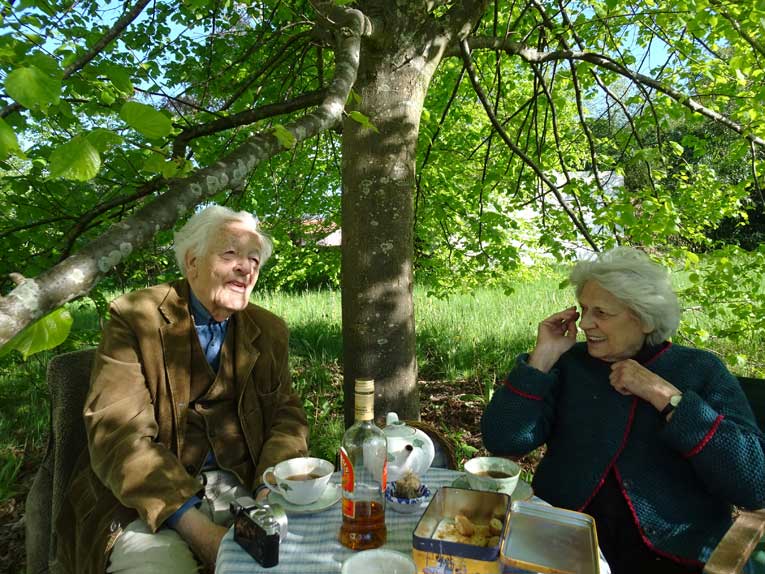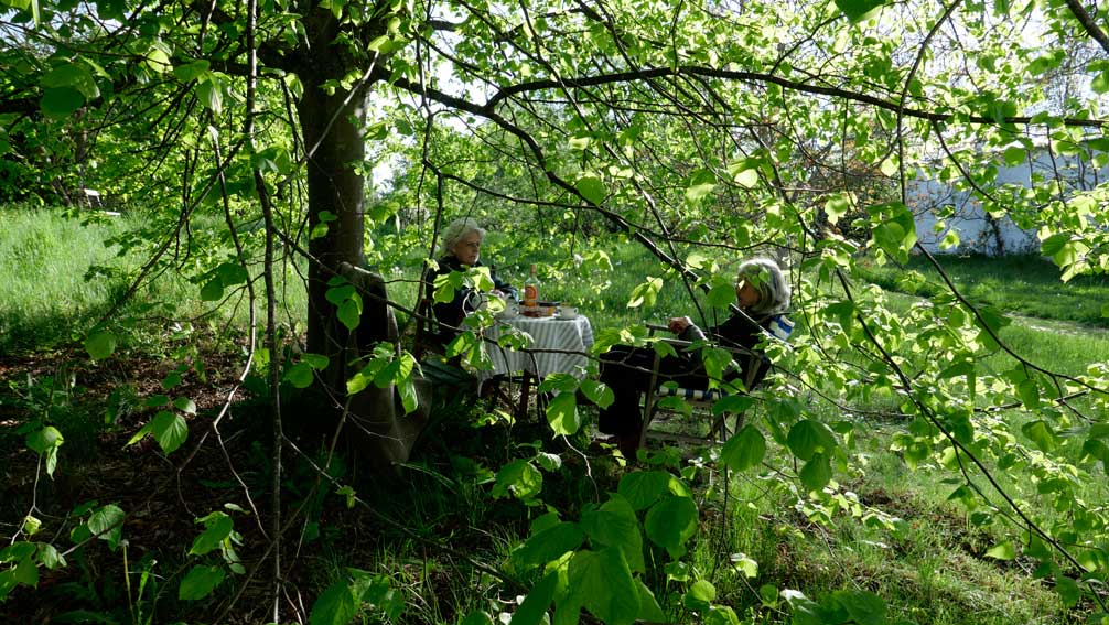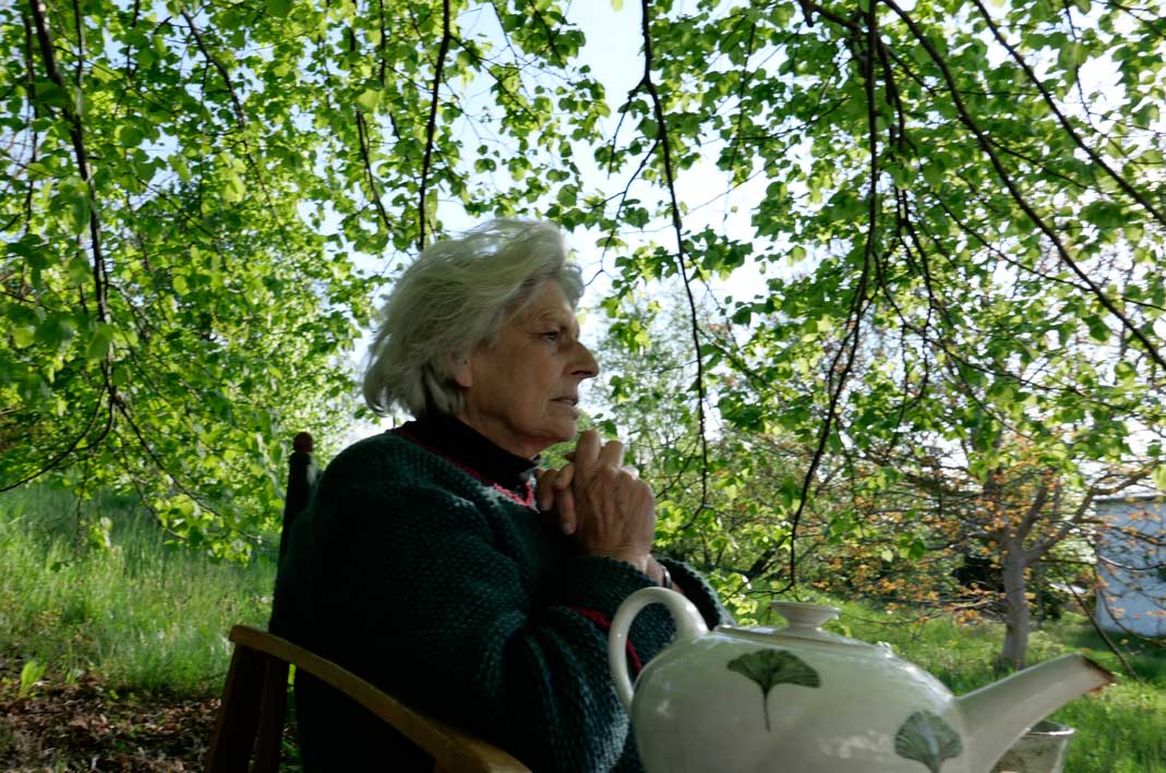 leise verbirgt sich Haus und Hof von oben gesehen für dem Sommer im dichten Laub aus Scham vor zuviel Licht. Dem schnellen Zugriff.