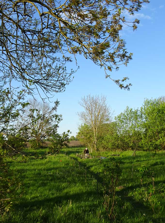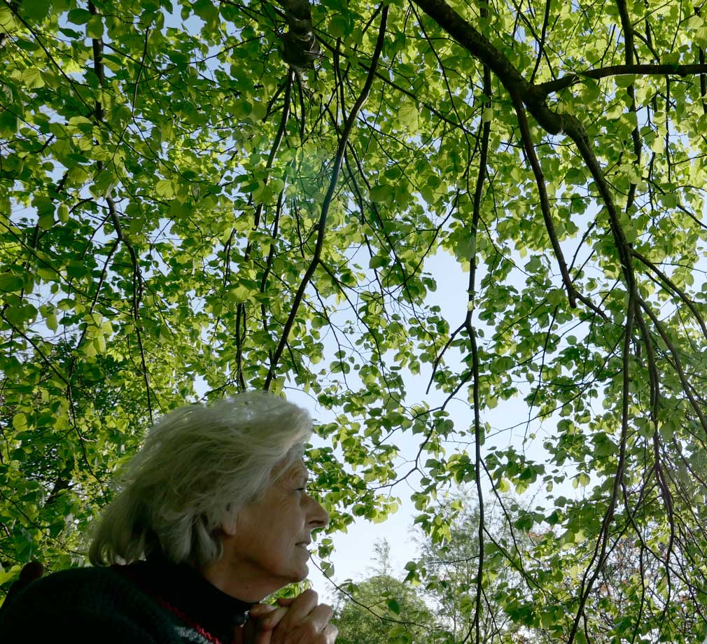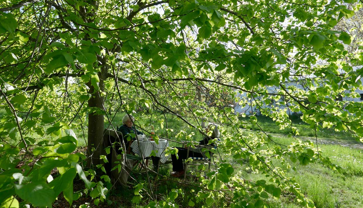 die Sonne endlich lockt unten das junge Grün der Bäume