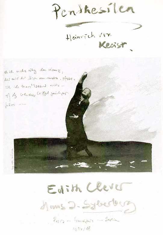 aber wie komm ich aus der Penthtesilea in den Achill und von dem Schrei der Täterin aus dem Blut des Toten in die Tränen des Alls - und alles im Fluss, der Töne auch, der Musik oder Geräusche, nur bei der Penthesilea nicht, der strengen, hoch geschraubt und fest ge-erdet.