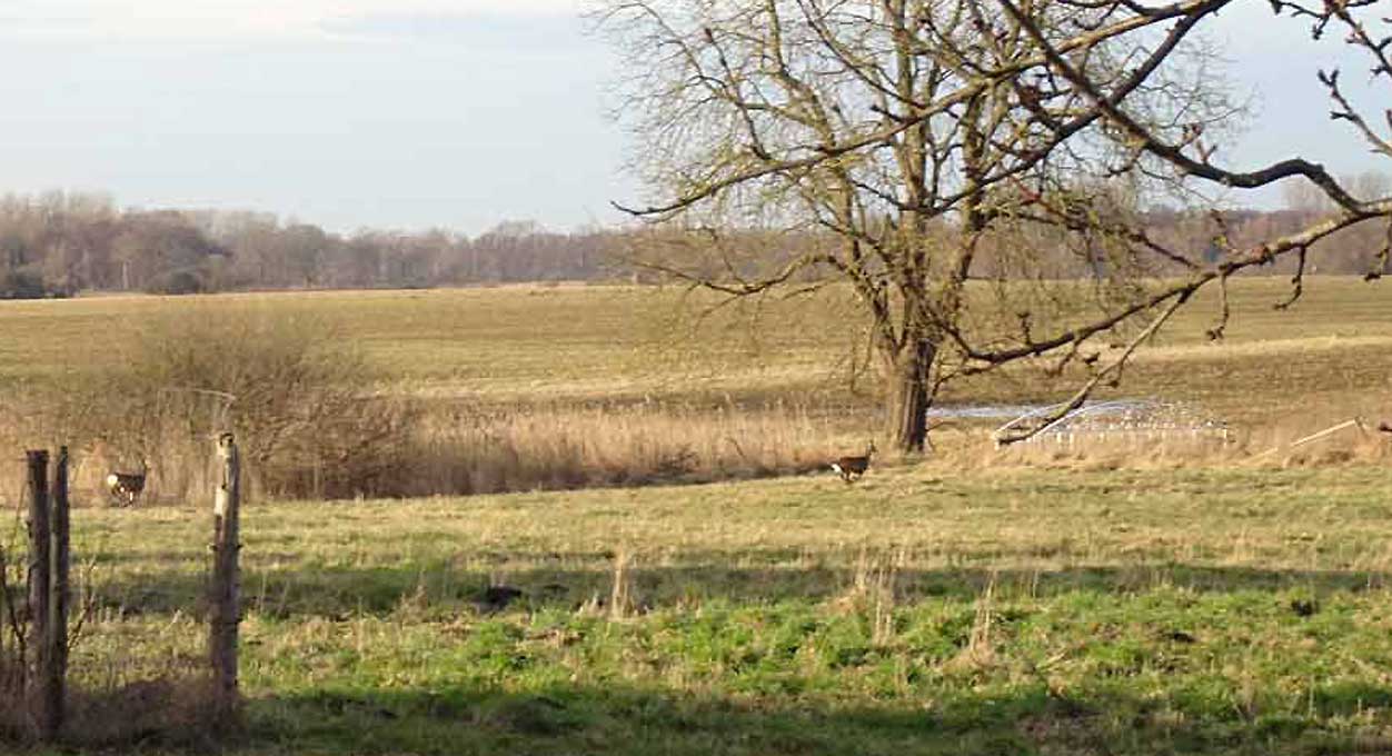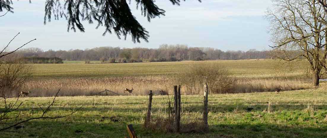 zur anderen Seite der Blick auf die Felder vor dem Wald