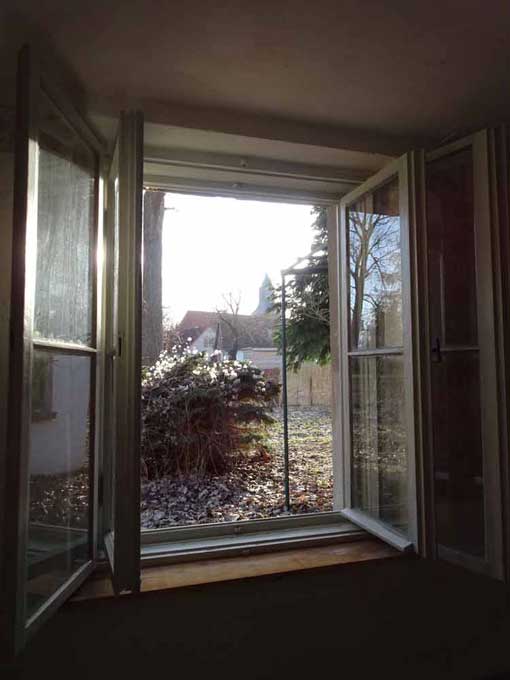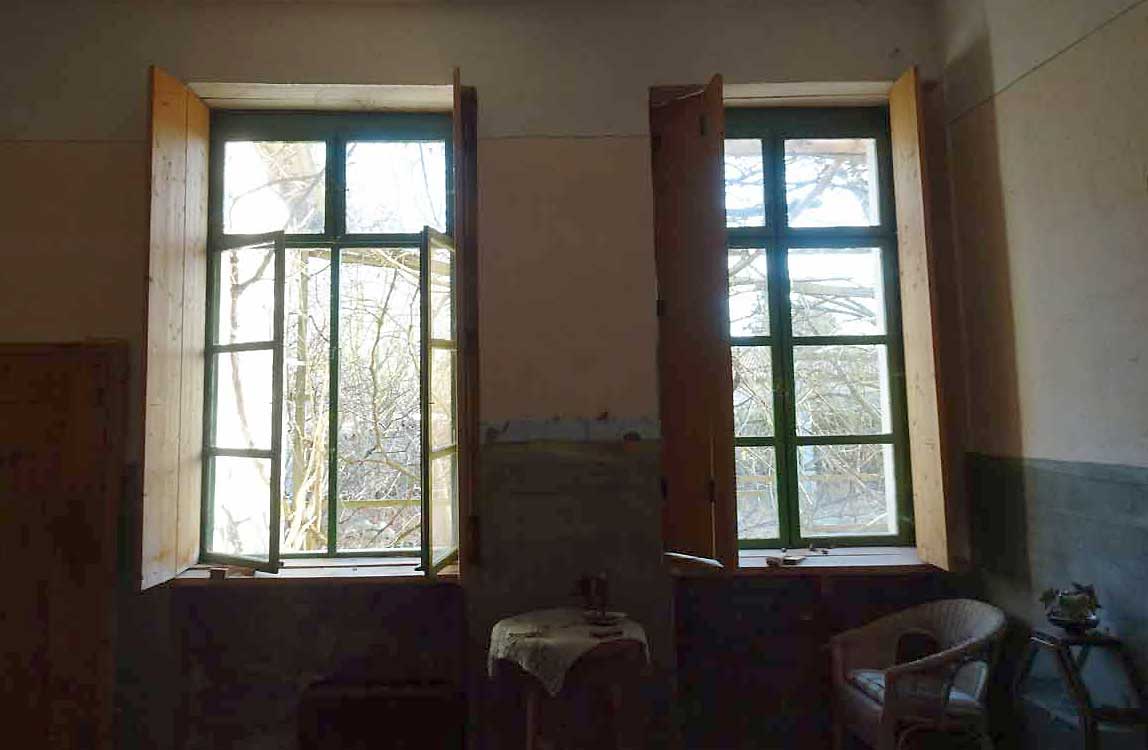 und überall des Alfreds Spuren, seine Fenster durchs ganze Haus und Betten dazu.