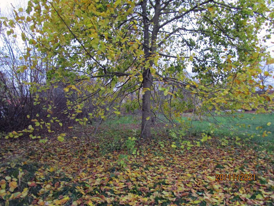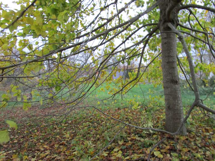 Der Gyngko nun auch ohne Blätter, die Winterlinde einzig noch voll des Sommers.