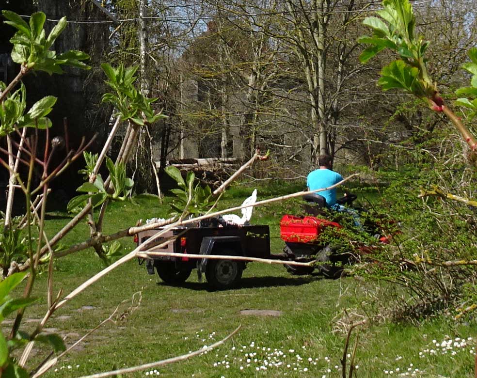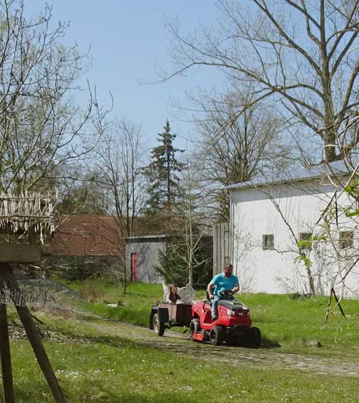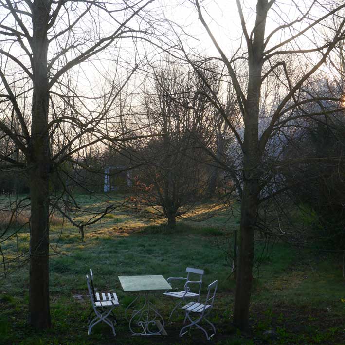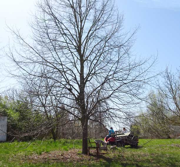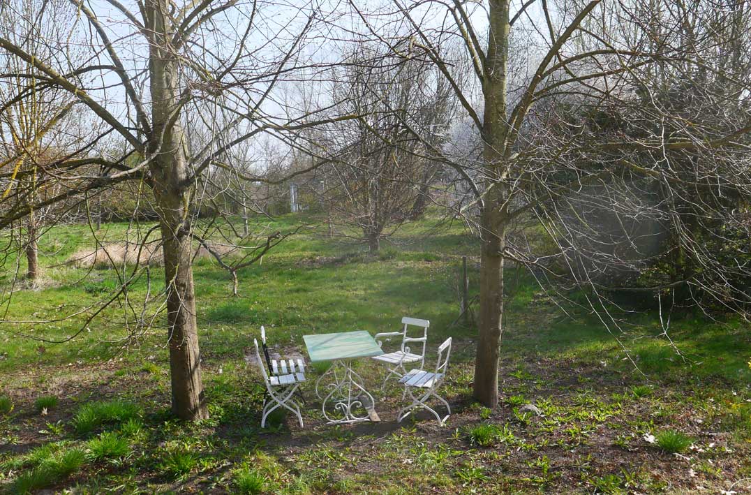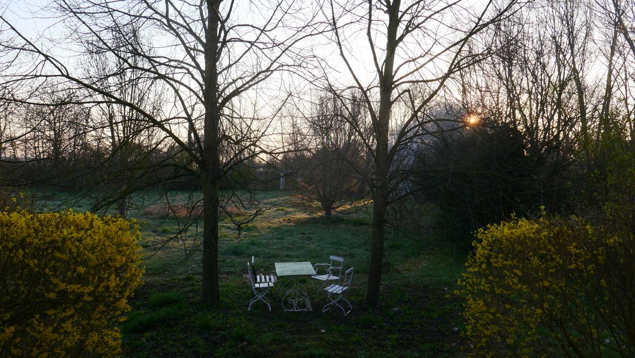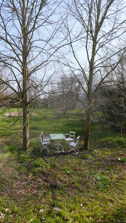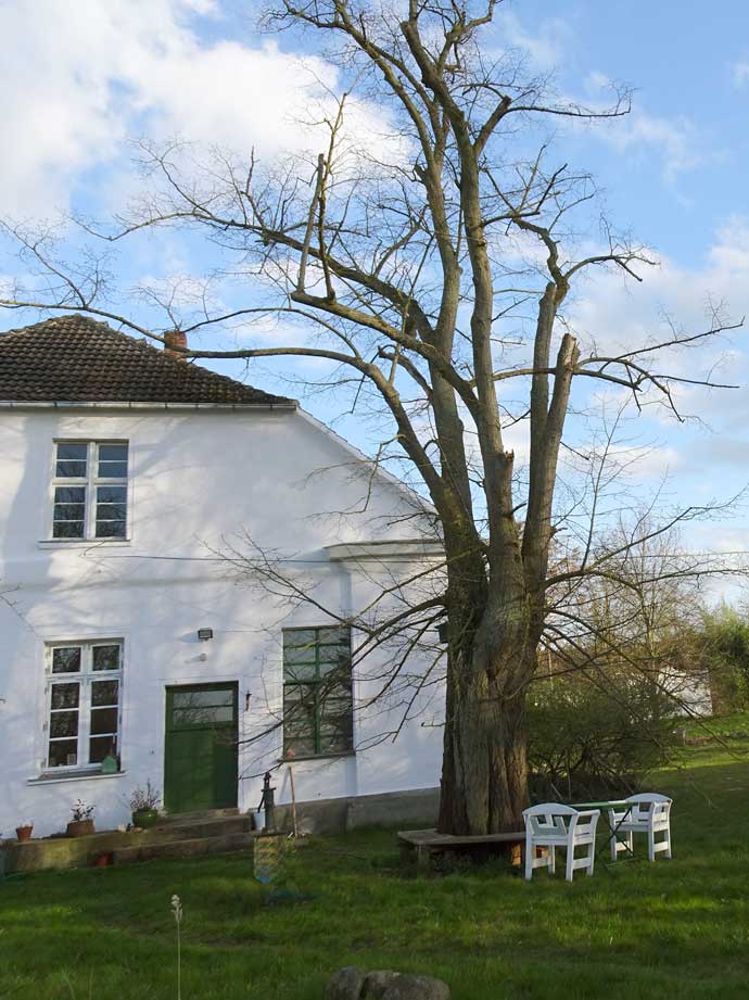 stehen wieder die weissen Stühle unter der alten Küchen Linde vor der Seite dem Haus
