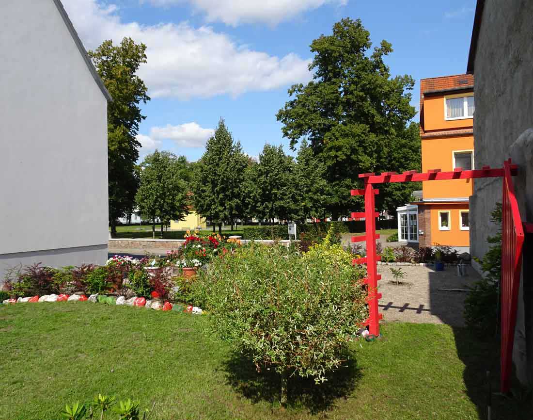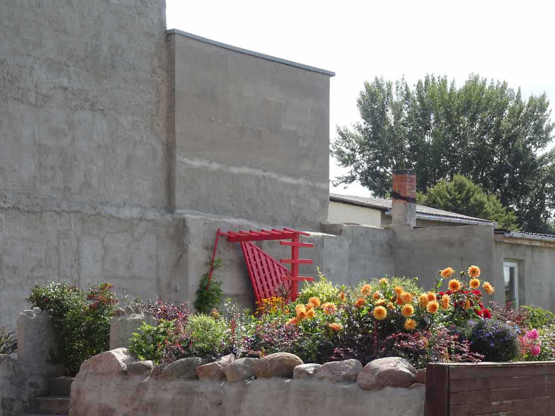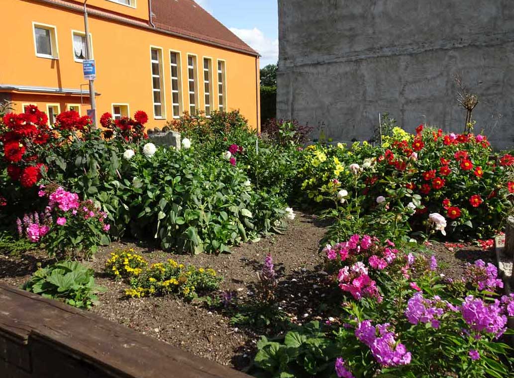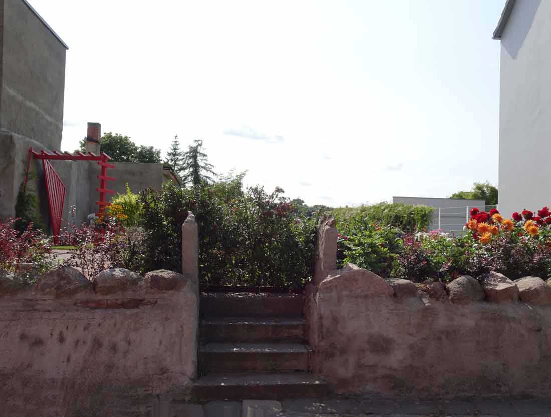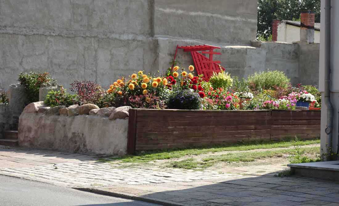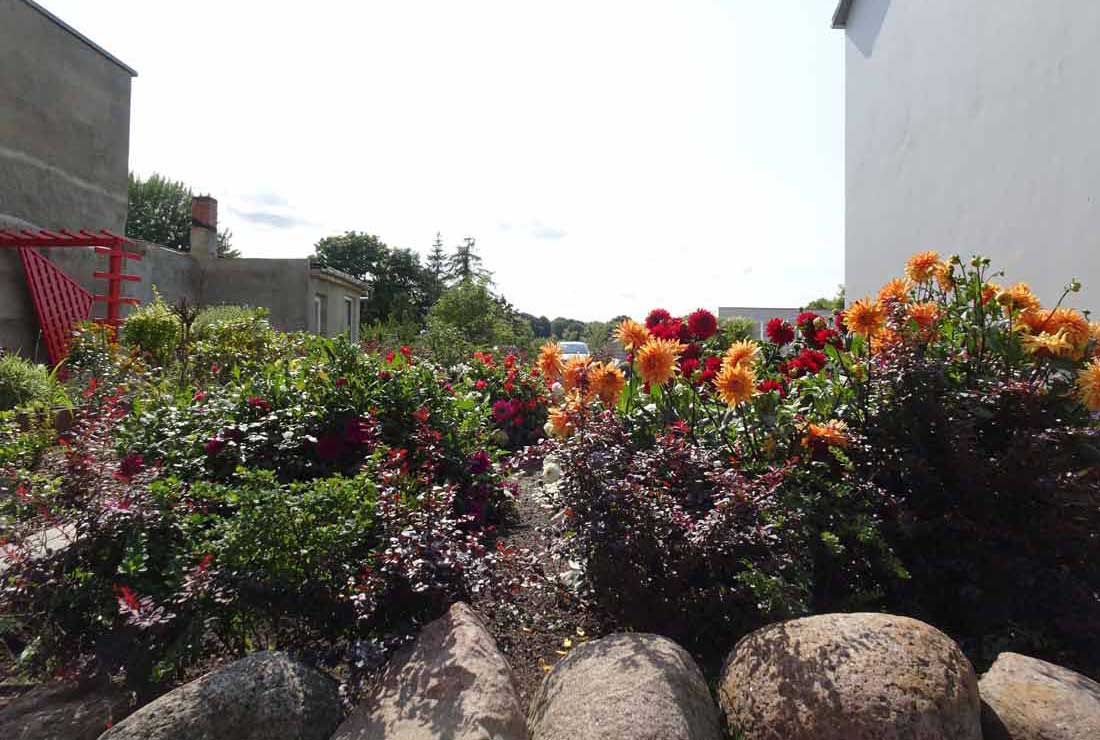 den blühenden Garten inmitten der Steine rundum, sorgfältig hergeschafft von den Feldern und neu geordnet