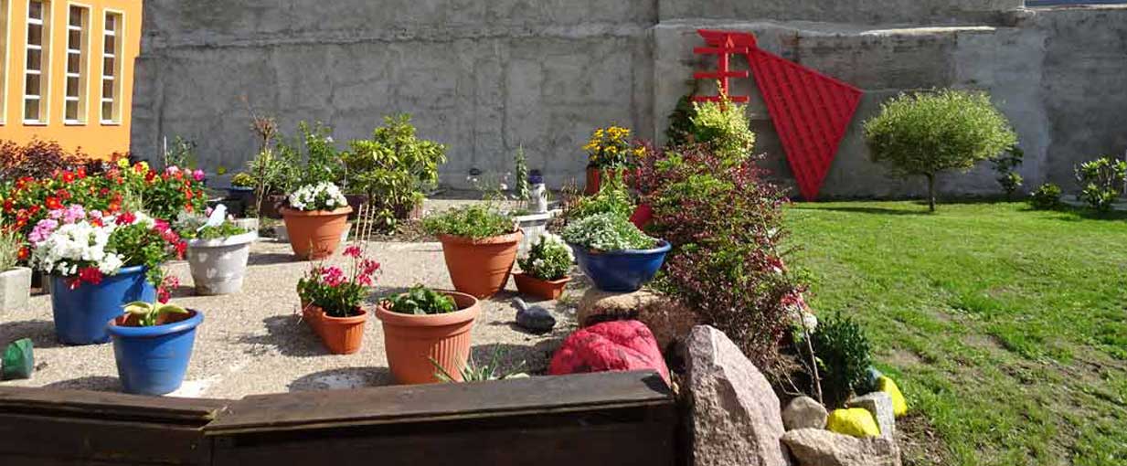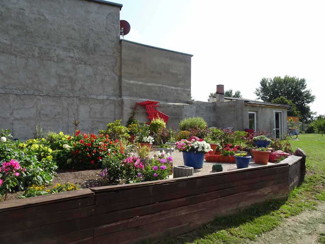 und wo der Grund befestigt wurde, zum gehen und giessen, stehen Töpfe ein ganzer Garten voll