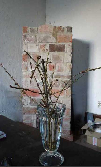 geborgen des Tages Glut der ersten Soinne des Jahres in den Knospenzweigen selbst nun im innern des Raums in den Schutz der Nacht von innen.