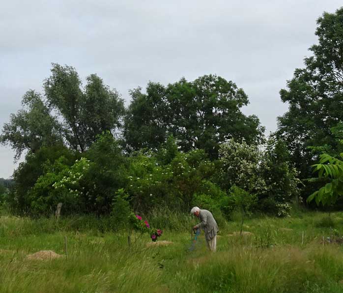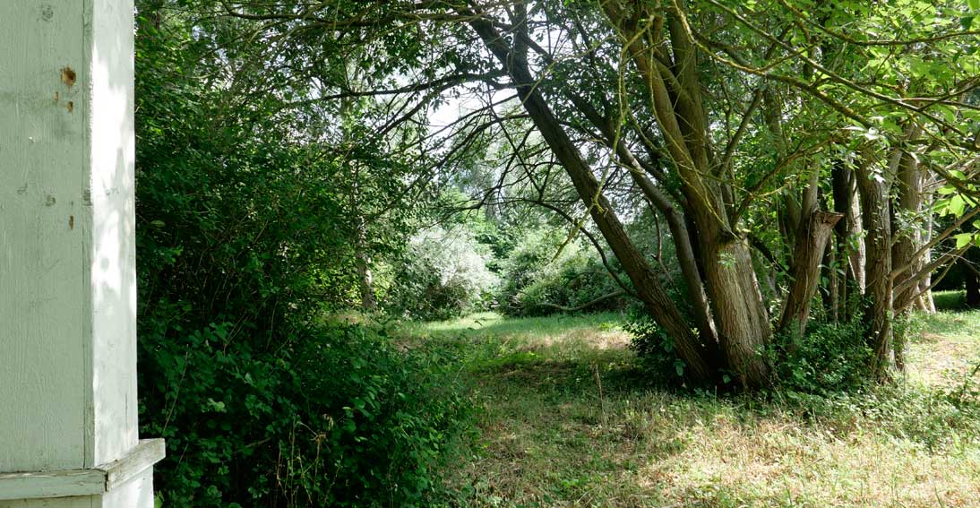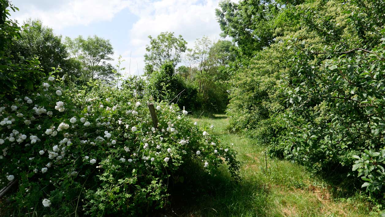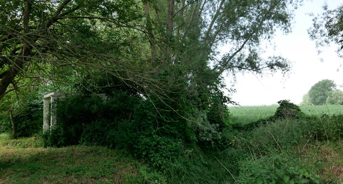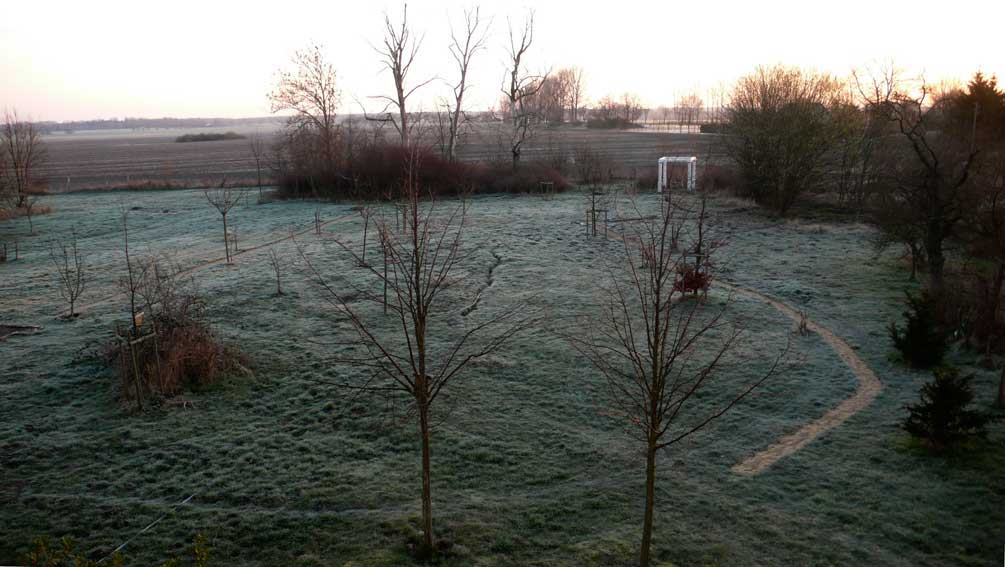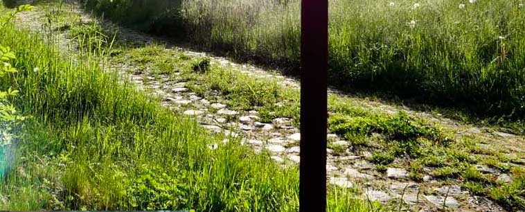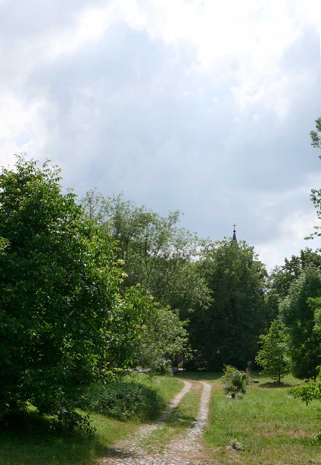 Auf die Seiten gegangen des Weges zur Kirche von 2008 als er verlorenging, mit Blick von oben zurück ins Nichts, als wir kamen.