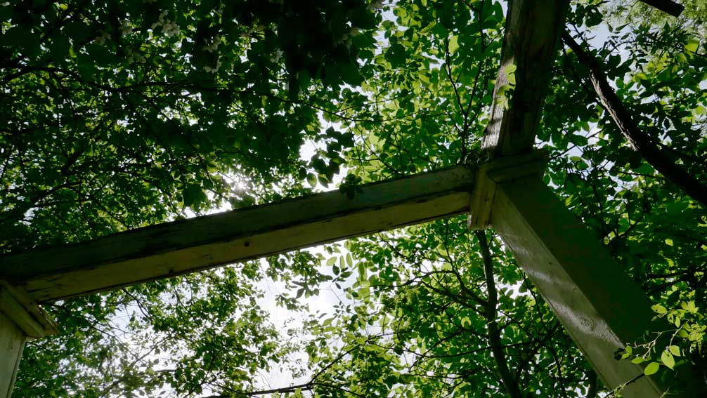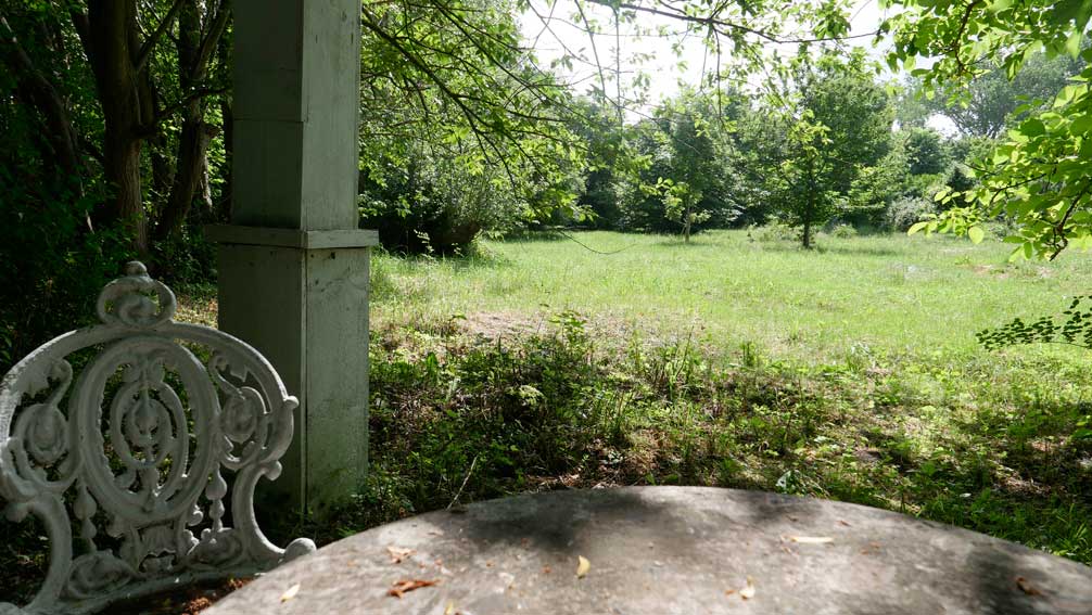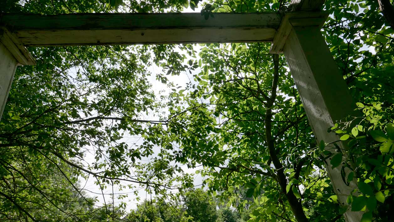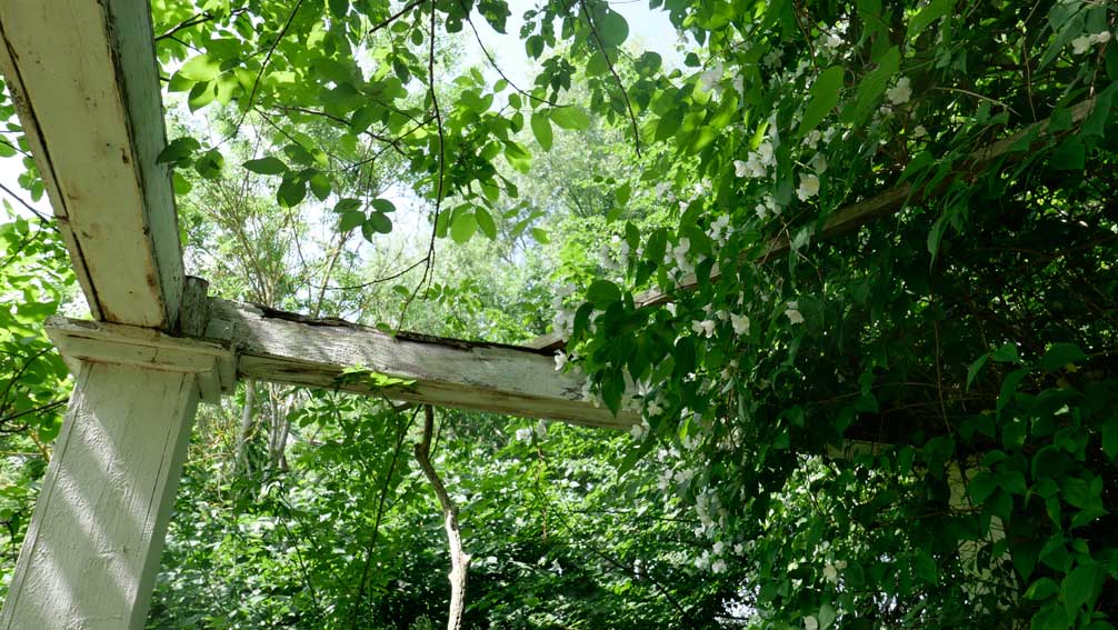 Dieser zum Weg gewordenen Hof hört nun auf. Wo es zum Turm ging. In heiterer Süsse. Trotzdem wurde er 2012 gebaut . Nun über allem hier.