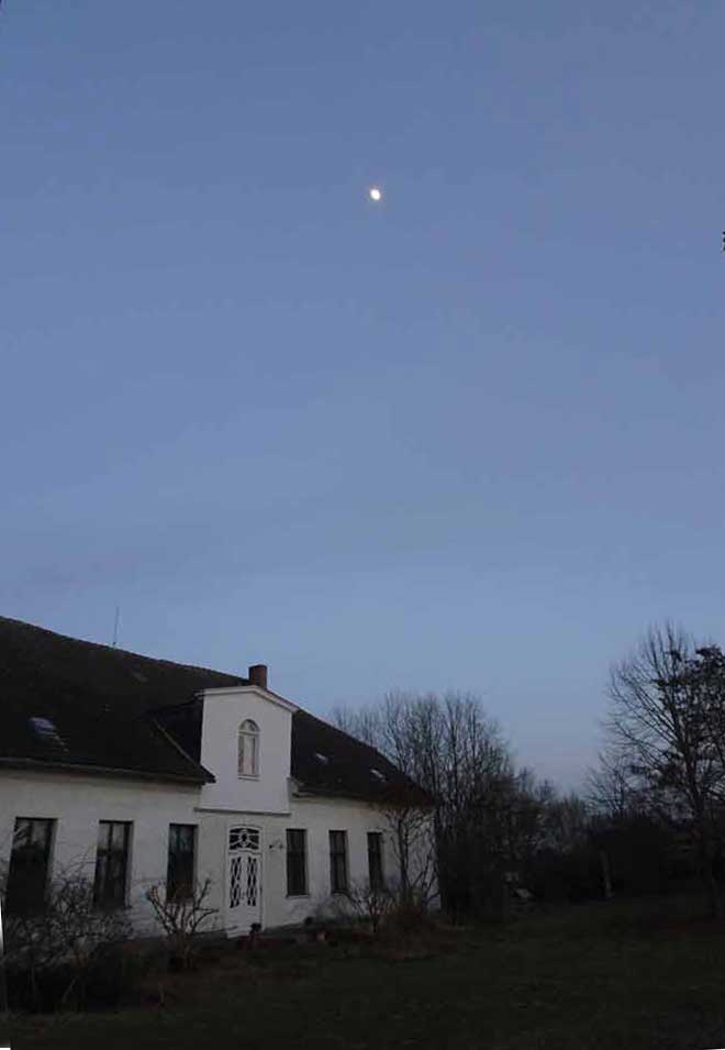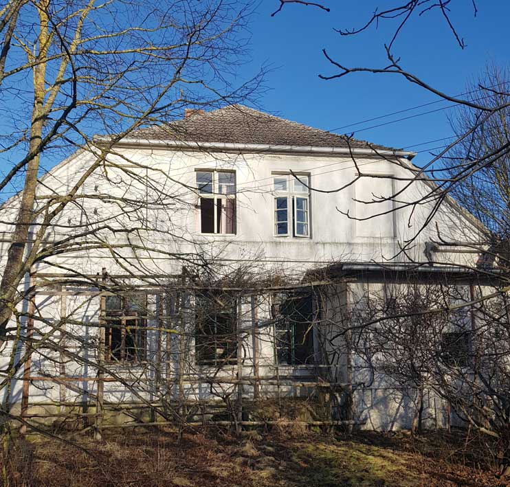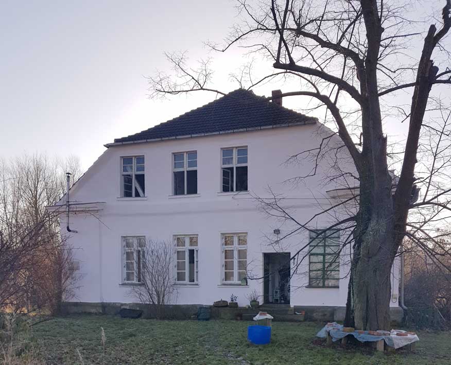 von Süden der Kern des Haus vor der neuen Fassung mit der Farbe des Sommers demnächst