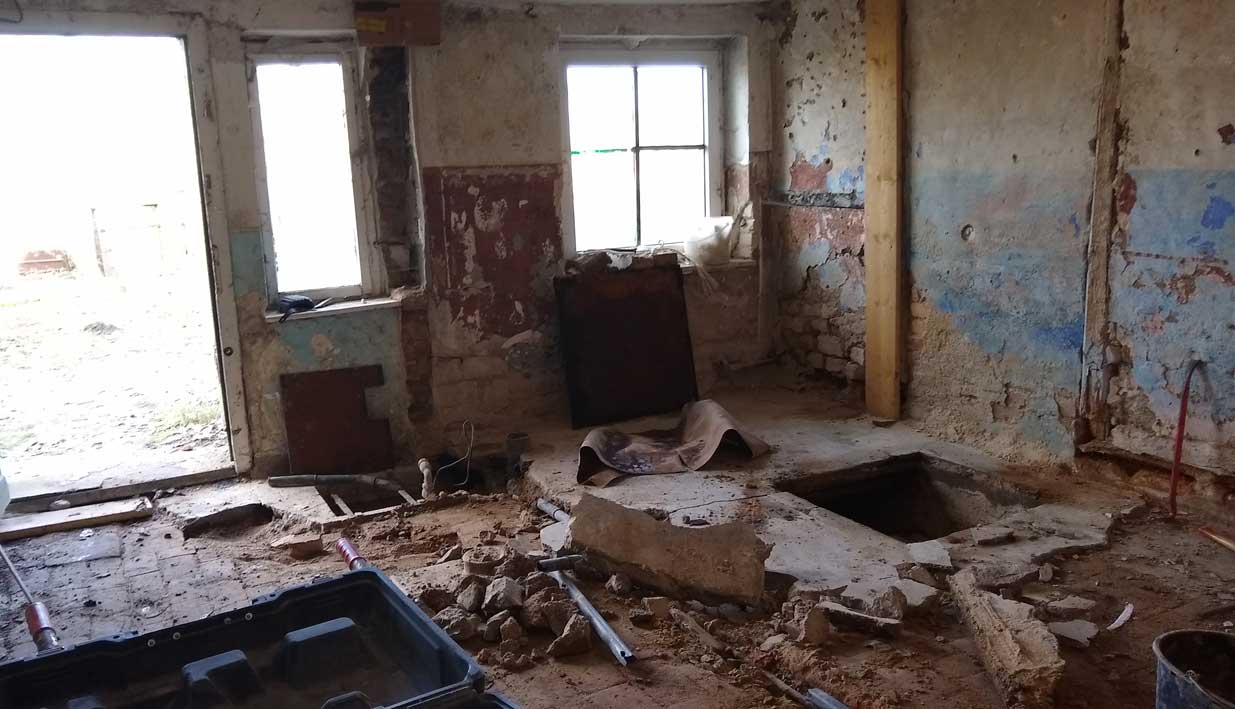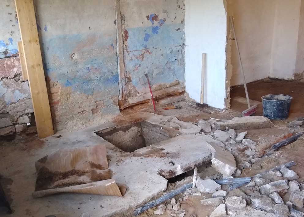 der aktuell vom Beton freigelegte Boden der mittleren Küche demnächst