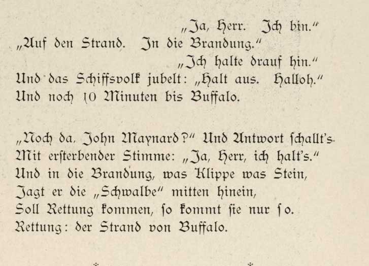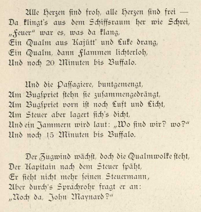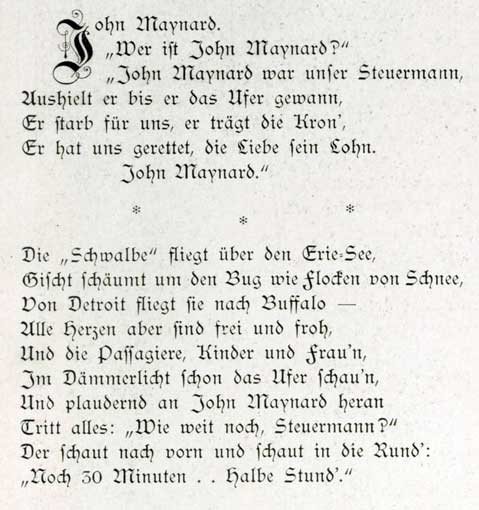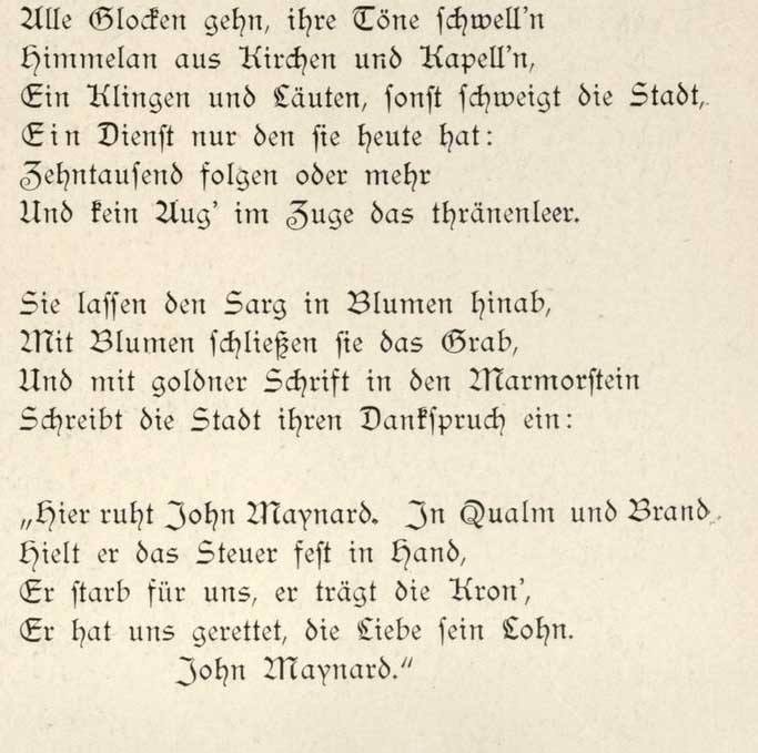 wie rezitiert habe, einmal, am Ort wo das gilt, -ob ich das kenne-: John Maynard. We ist John Maynard, nach guter Schule Gedächtnis fehlerlos nun hier: