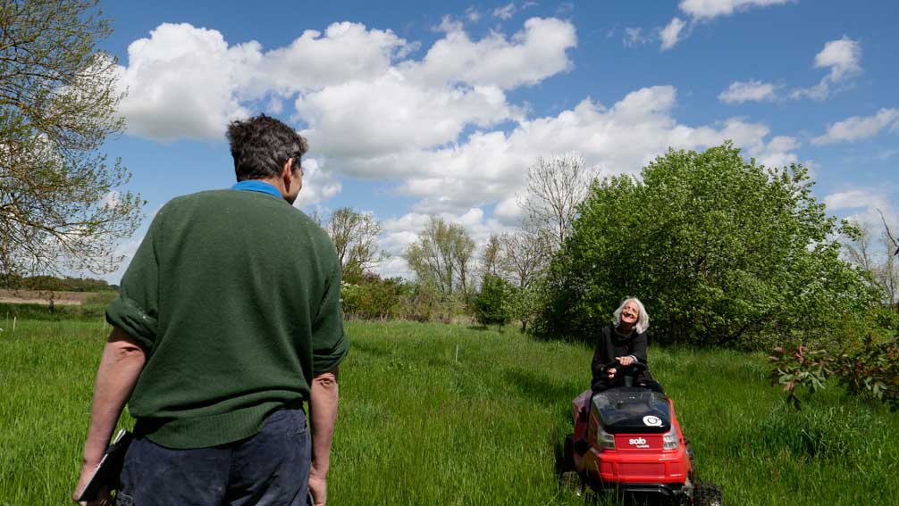 nicht alles soll gemäht werden, wegen die Tiere und blühenden Wiese, aber doch so, dass wir durchkommen