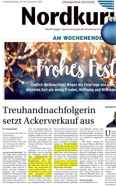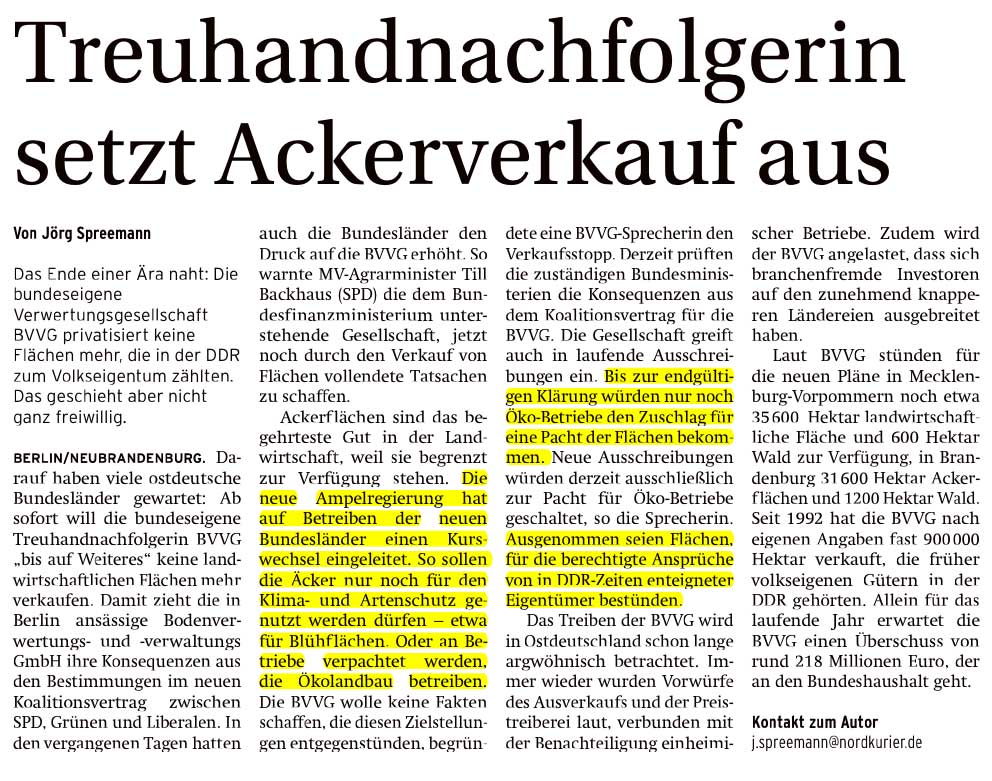 Das ist interessant für Demmin. Denn D. hat Ansprüche in der Höhe von 860 Ha des Stadtgutes in Nossendorf. Und die für kulturelle Nutzung des Bodens nun zu nutzen wäre einger Plänen wert. D.H. Der neue Bürgermeister ist gefordert. Und wir auch.